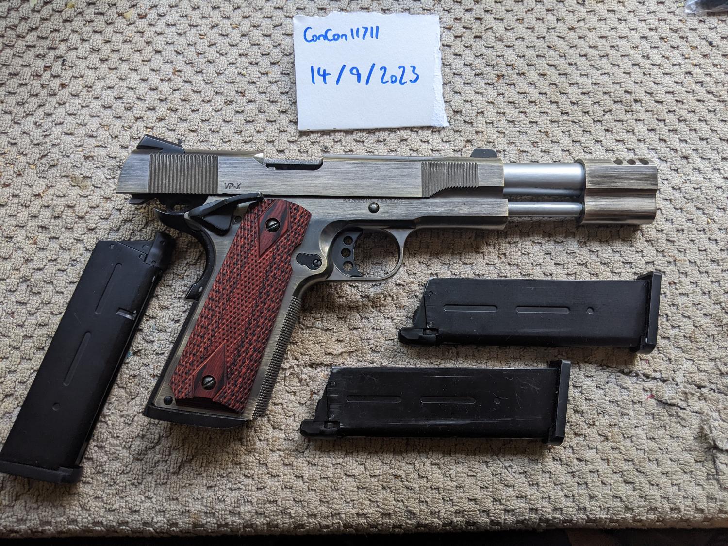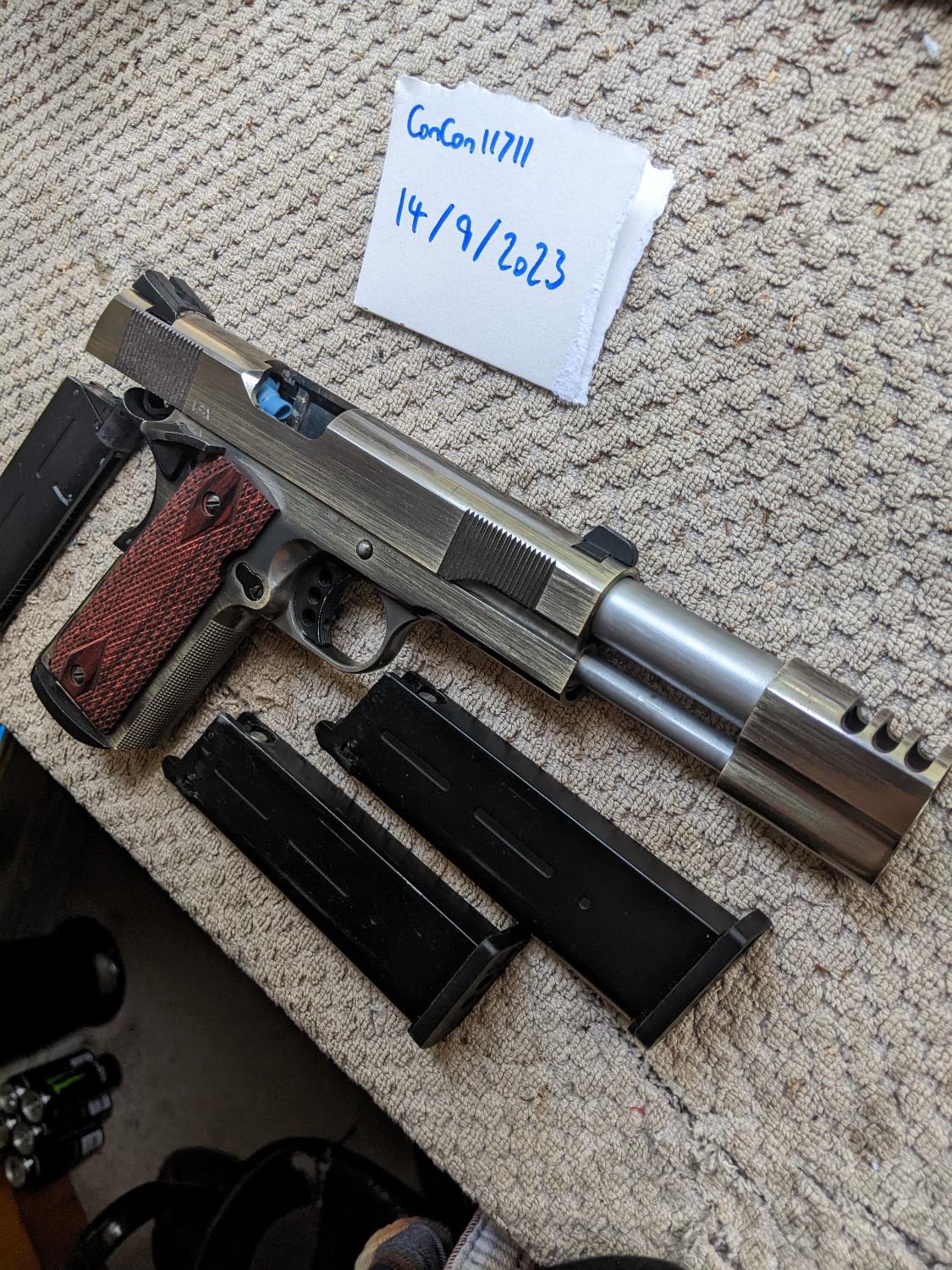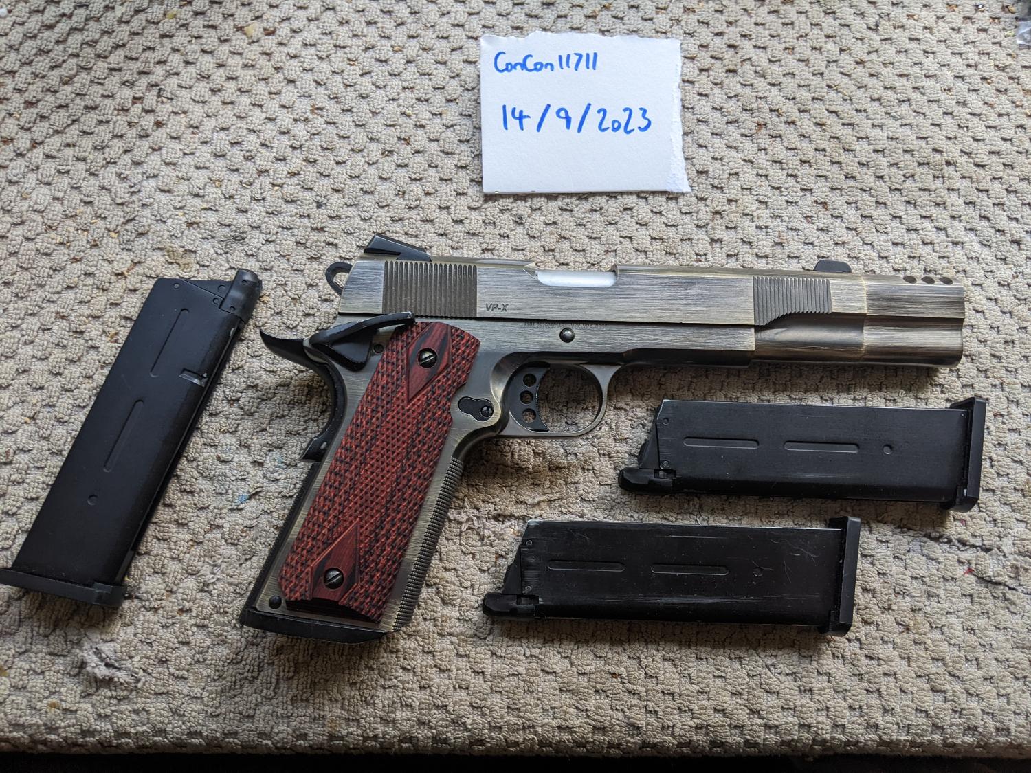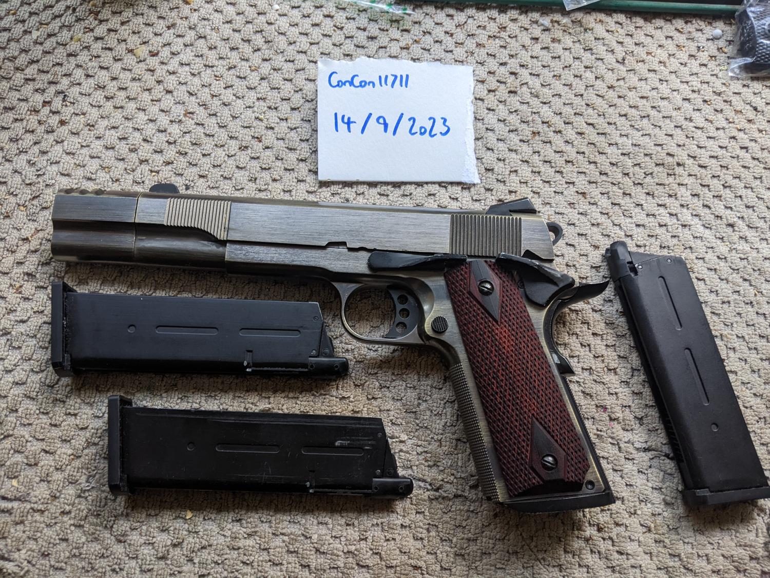 Here we have a full metal gas blowback pistol made by Vorsk. It shoots efficiently, comes with 3x leak free 19rd mags and wooden grips fitted. Happy to post for £5.