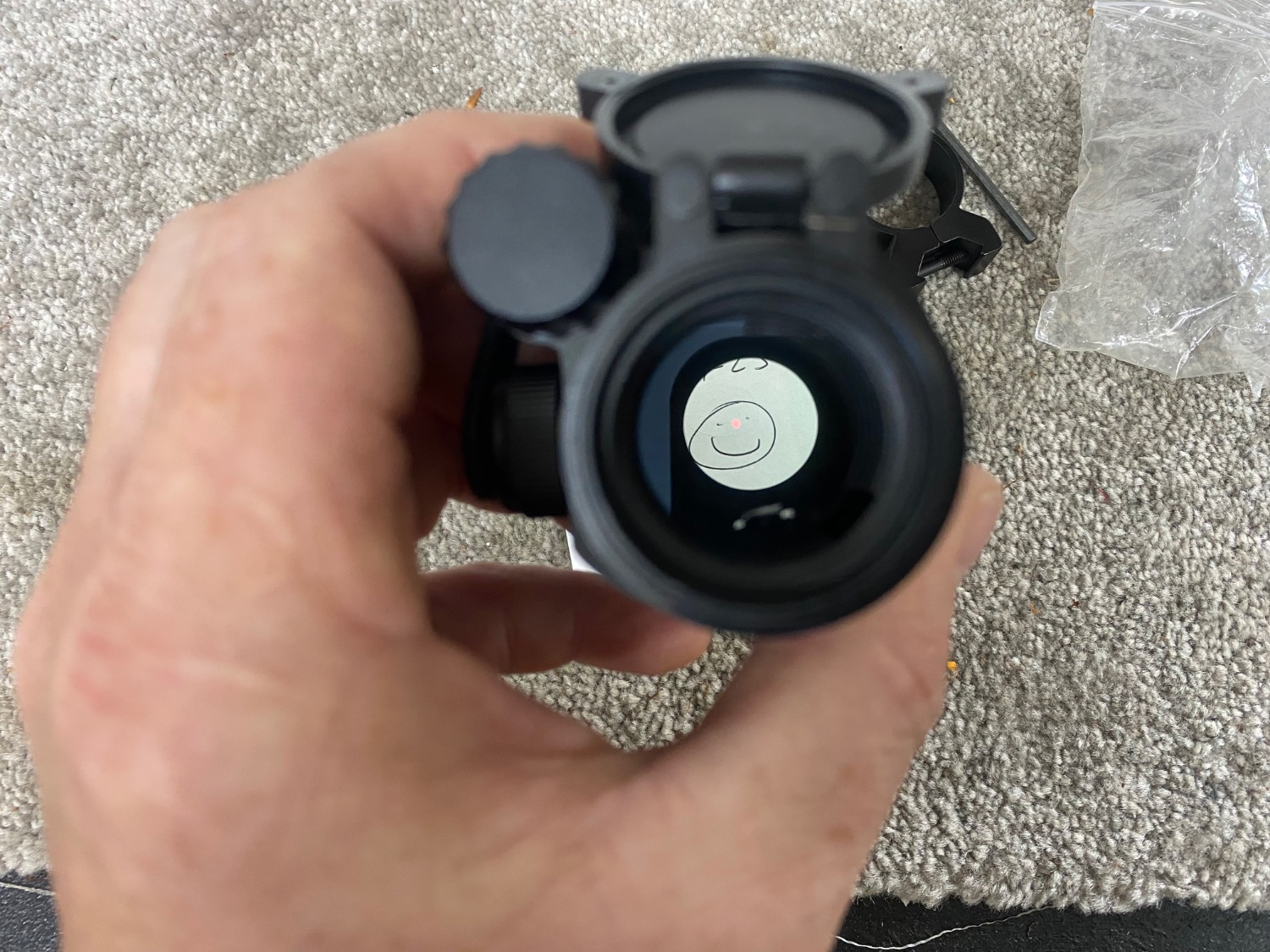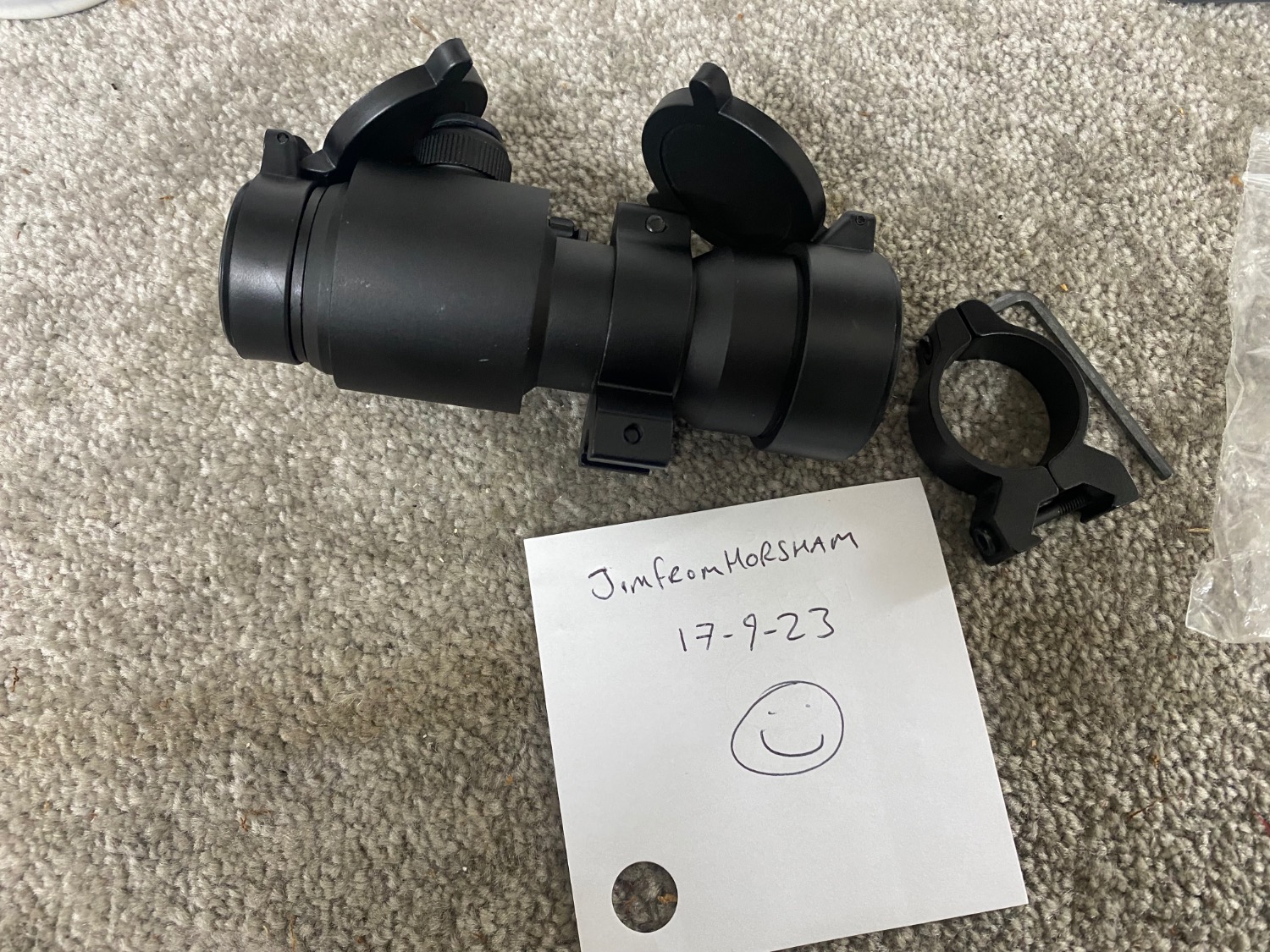 Aimpoint clone , tested and working ,on / off brightness cap is a bit loose , may need some glue , but fully functional and in good condition overall , spare 30mm pic mount included .