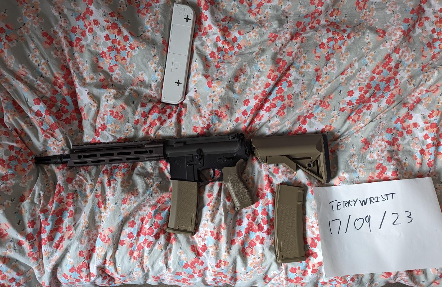 This is my Specna Arms Rock River Arms SA-E01 EDGE that i brought years ago, I changed the front end to a DD MFR Mlok clone rail, and the upper receiver with another specna arms receiver in grey.