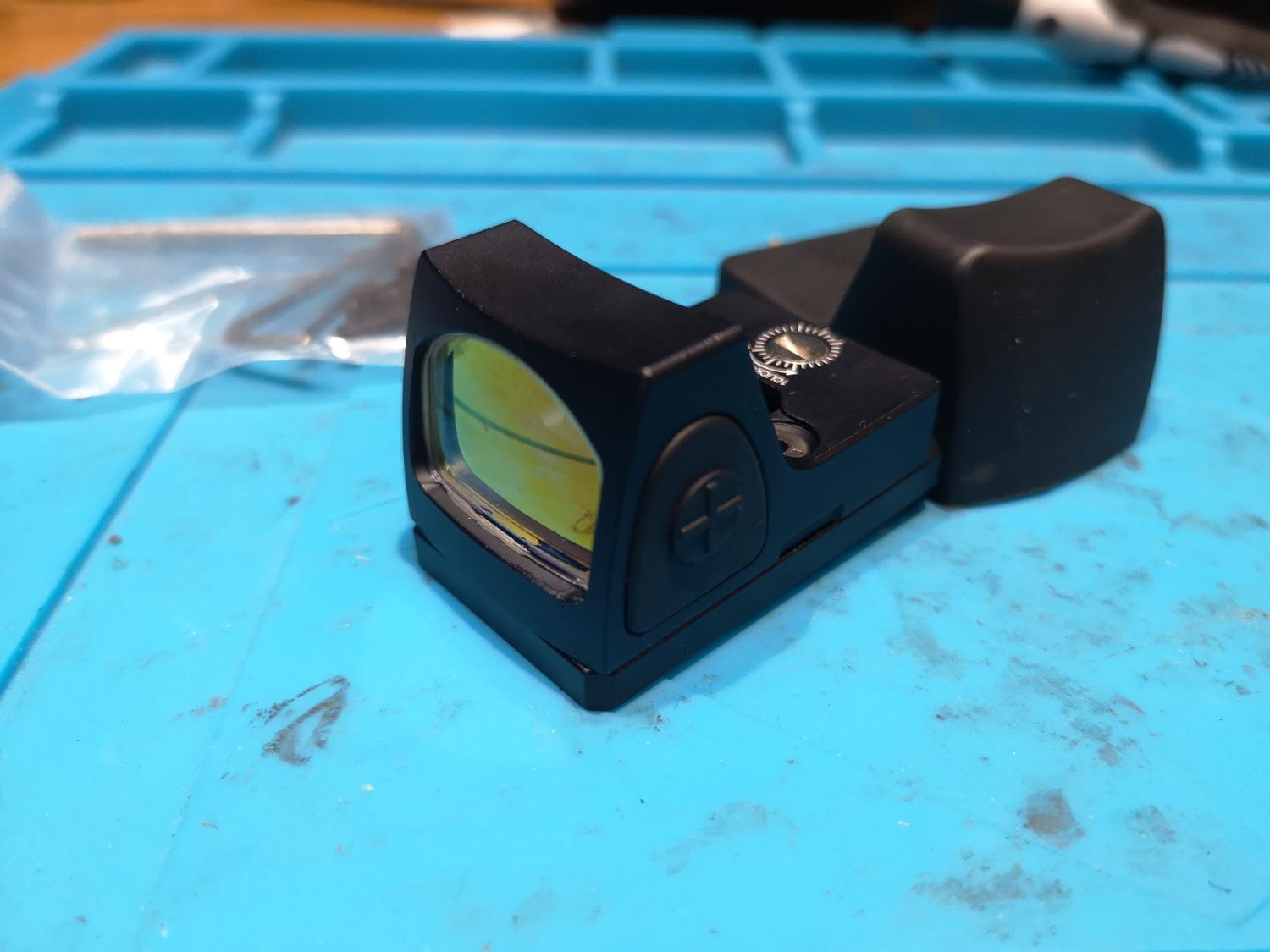 Mini red dot that works fine. It can only be mounted to a glock as is. I attempted to fit this to my vfc glock 19 but the mount screw won't fit through the iron sight hole and I'm not prepared to drill it. The fitting screw was only slightly too thick.