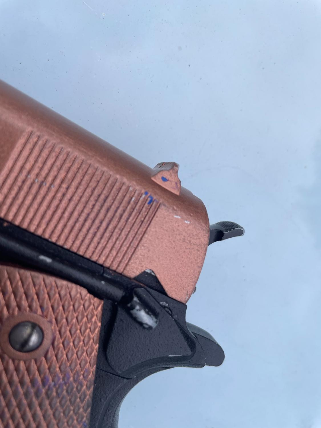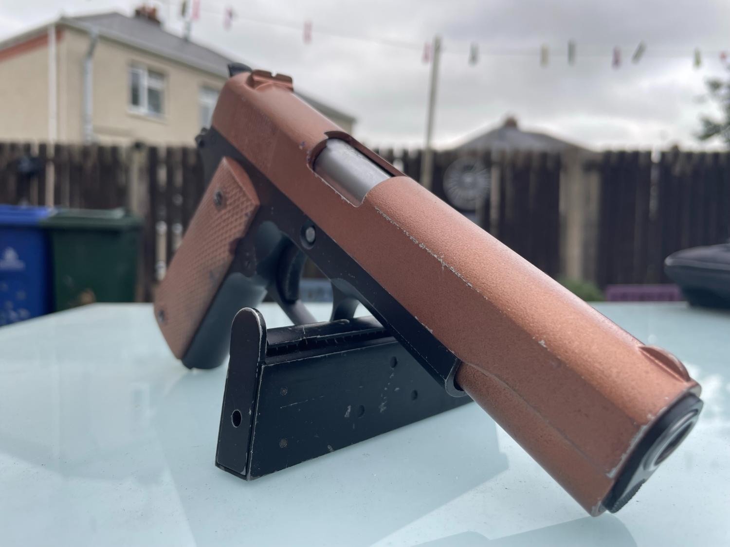 I got this as part of a bulk a while back and just hung onto it with the intention of stripping it and doing a proper paintjob but forgot all about it and now I want pennies more than a 1911.