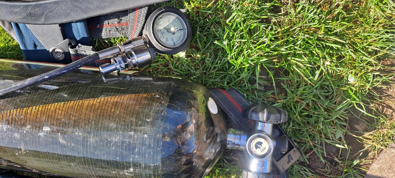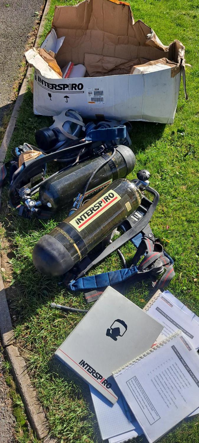 Come with back harnesses, guages on each take addition gauge on one tank , masks not included bit negotiable. Paperwork included . Been sat with full pressure for years fully functional and as new .