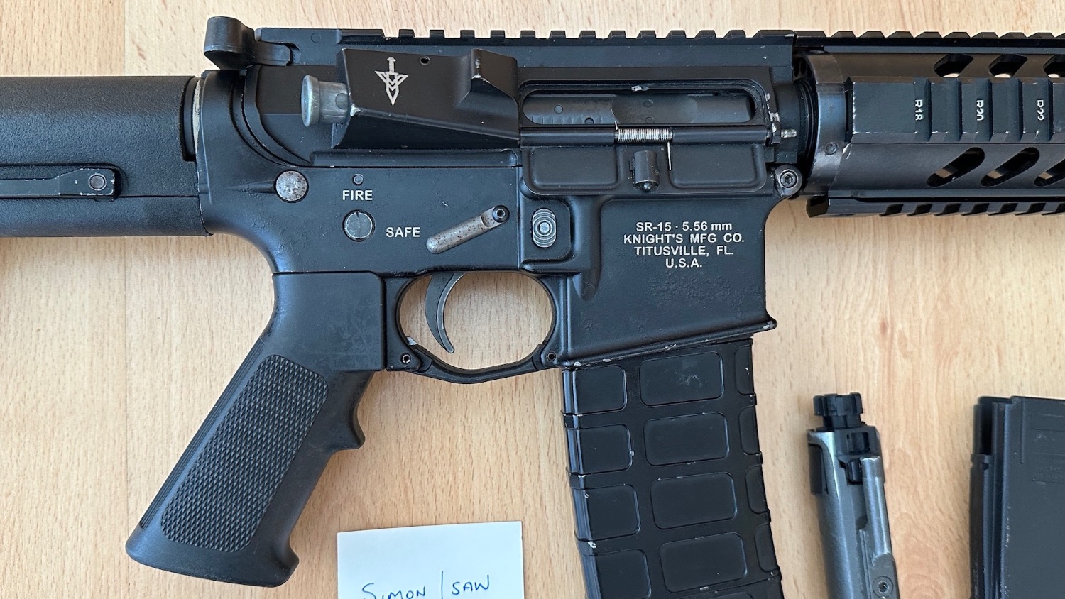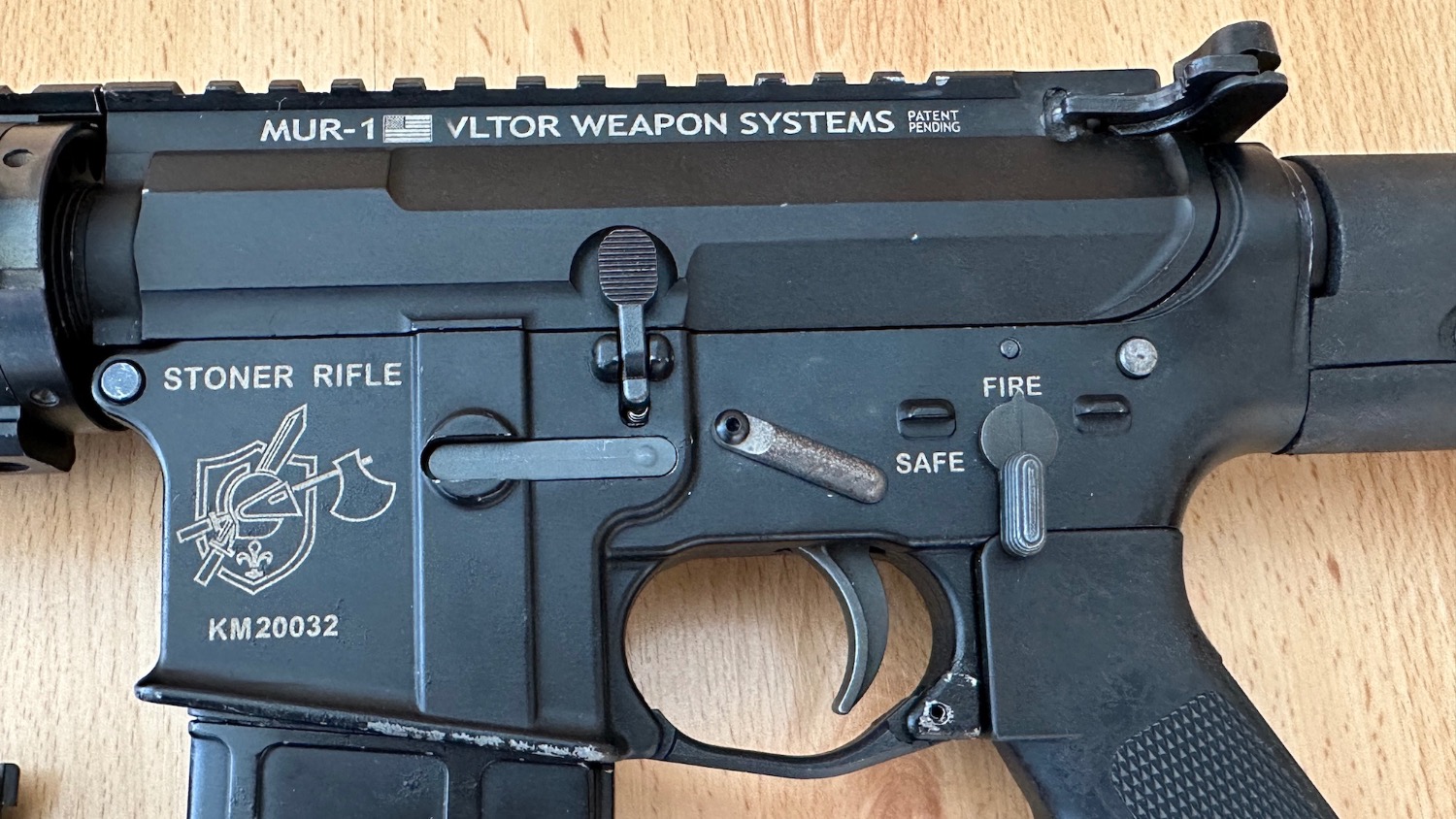 Full metal lower with STONER trade marks and anti-rotation pins. Paint is blistering on the lower under the trades, and unfortunately the trigger guard broke on one side fitting the Magpul trigger guard.