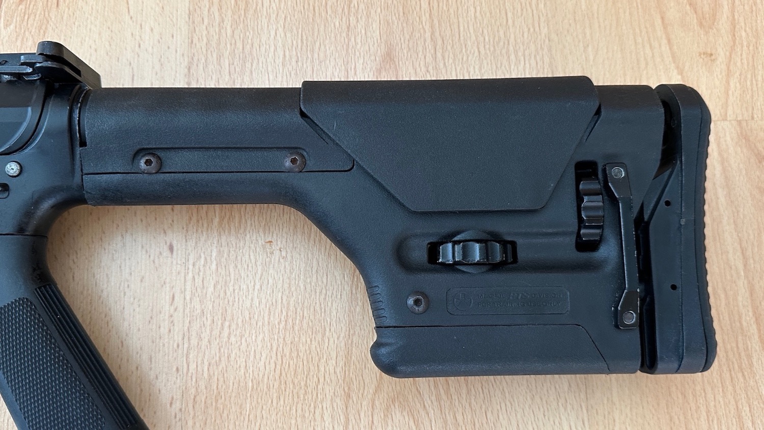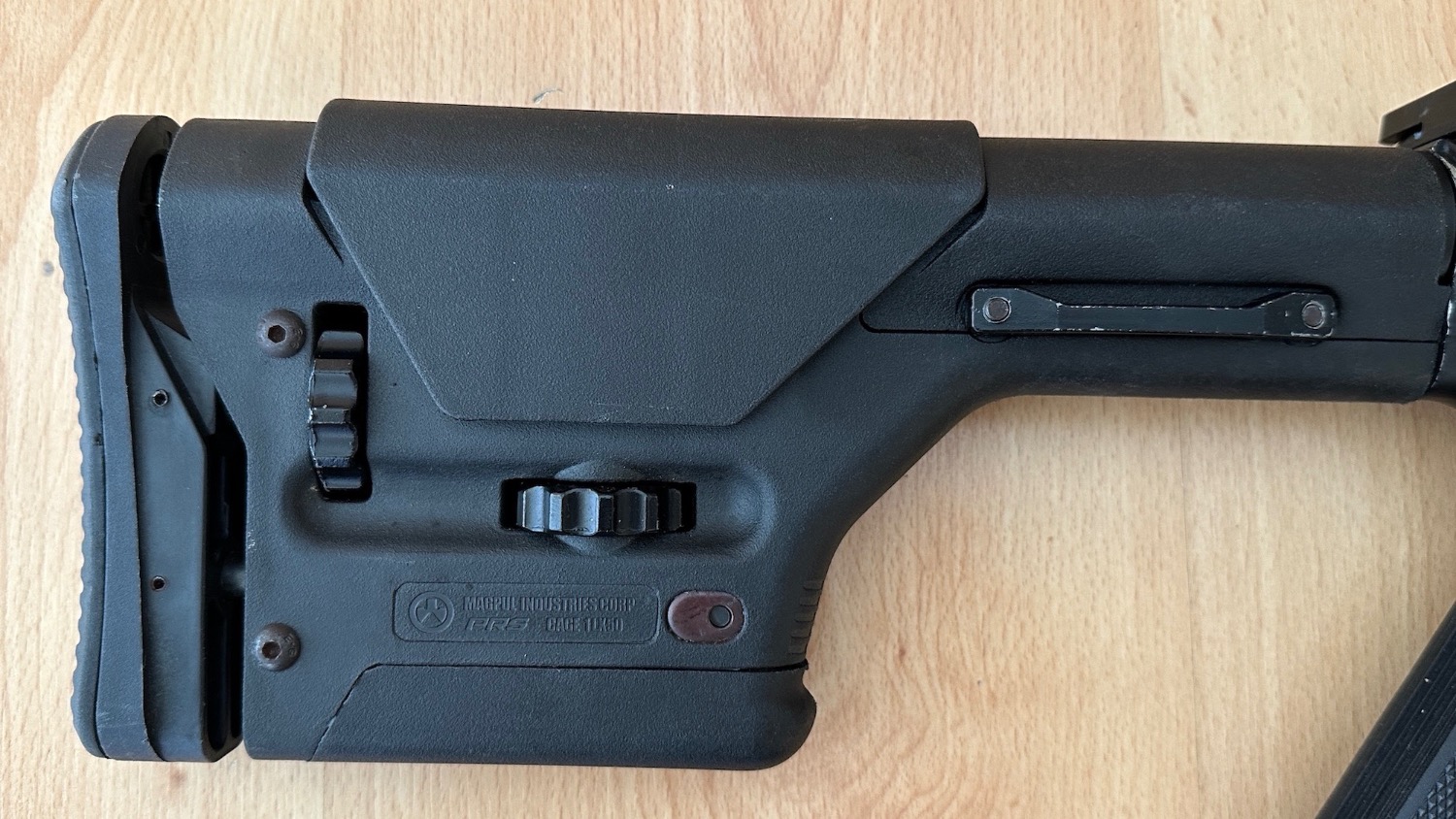 Stock is a replica Magpul PRS adjustable GBB sniper stock. Signs of use and screws show minimal signs of surface rust. These sell for over £100 for the GBB version.