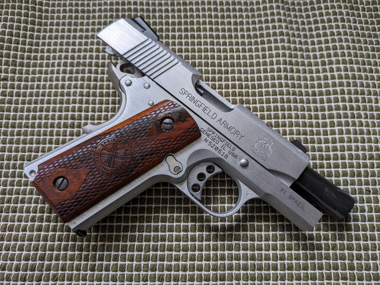 Guarder Aluminum slide and frame. Guarder steel outer barrel. Kimpoi Springfield wood grips. Steel controls and trigger box parts. Other internals stock Marui. Runs smoothly and cycles perfectly.