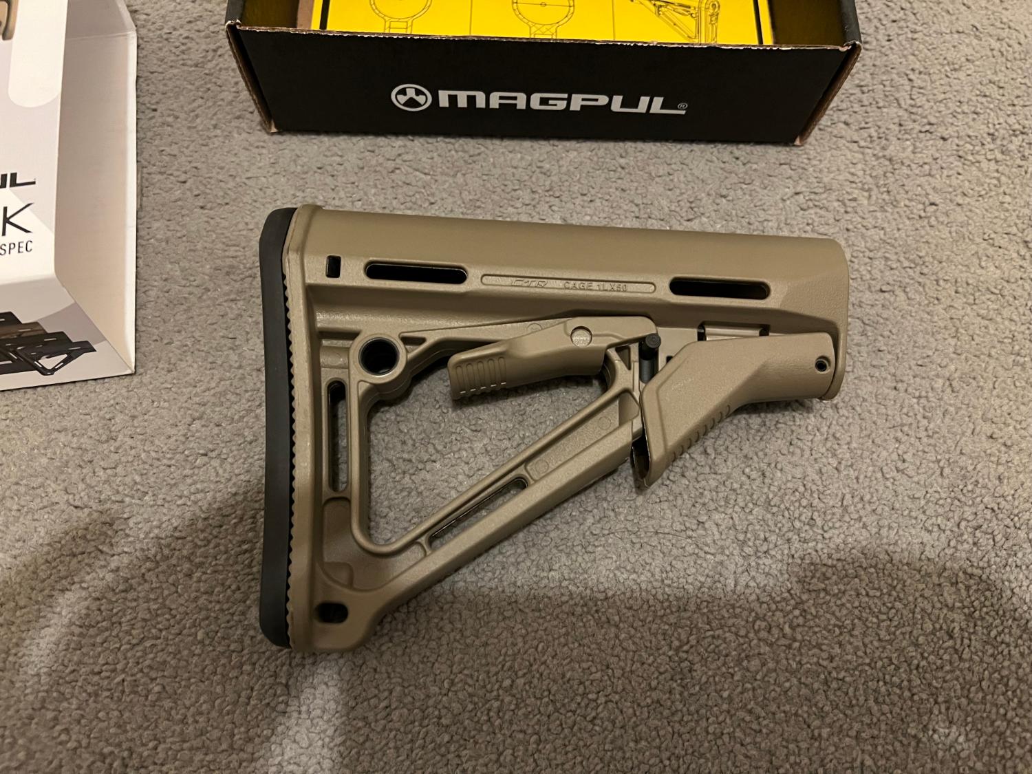 Genuine Magpul CTR Mil-spec FDE stock for sale. Has seen barely any use and as such is in excellent condition.