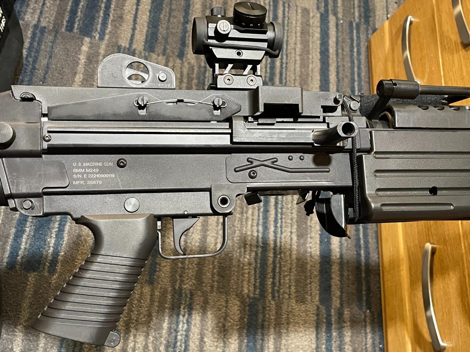 Only Used Once - Black A&K Cybergun M249 Mk2 AEG Support Gun with Red Dot Sight