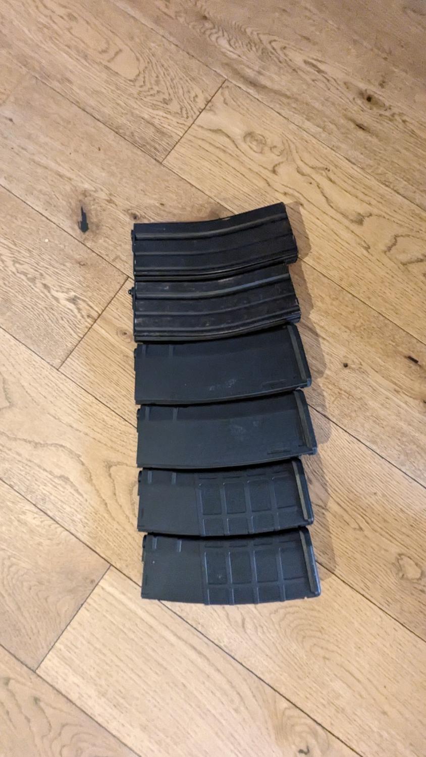 6 Mags (2 Specna Arms mid-caps plastic, 2 Nuprol mid-caps plastic, 2 Nuprol high-caps metal) (as shown)