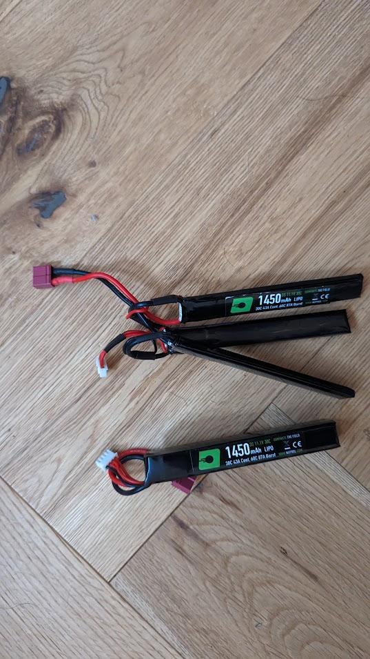 2 LiPo batteries at 1450mAh (block and bayonet style) (as shown)