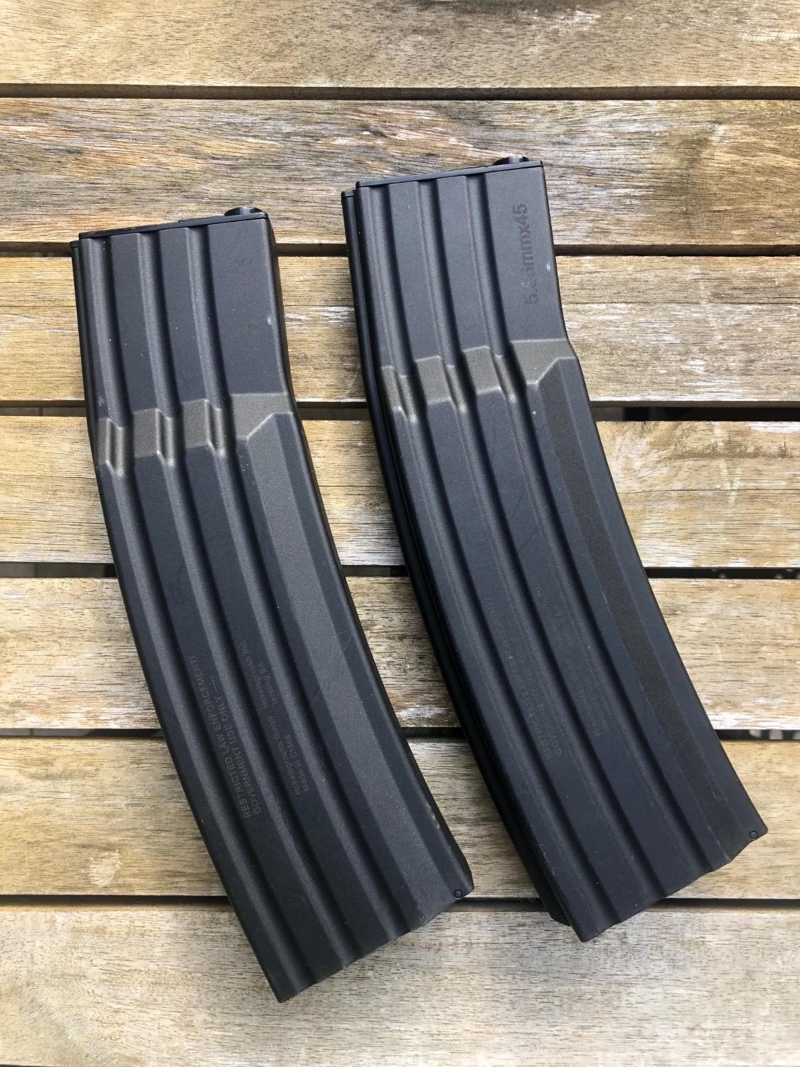 I think these are Ares, but I’m not sure. May need some electrical tape around the top of the mag where it sits in the magwell to stop any wobble as with most magazines.