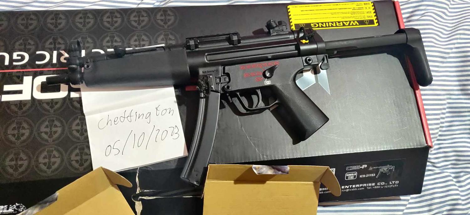 Selling my ICS MX5 Pro MP5A5 + 10x King Arms plastic mid caps and AIM sight rail. Looking for £300 posted all in.