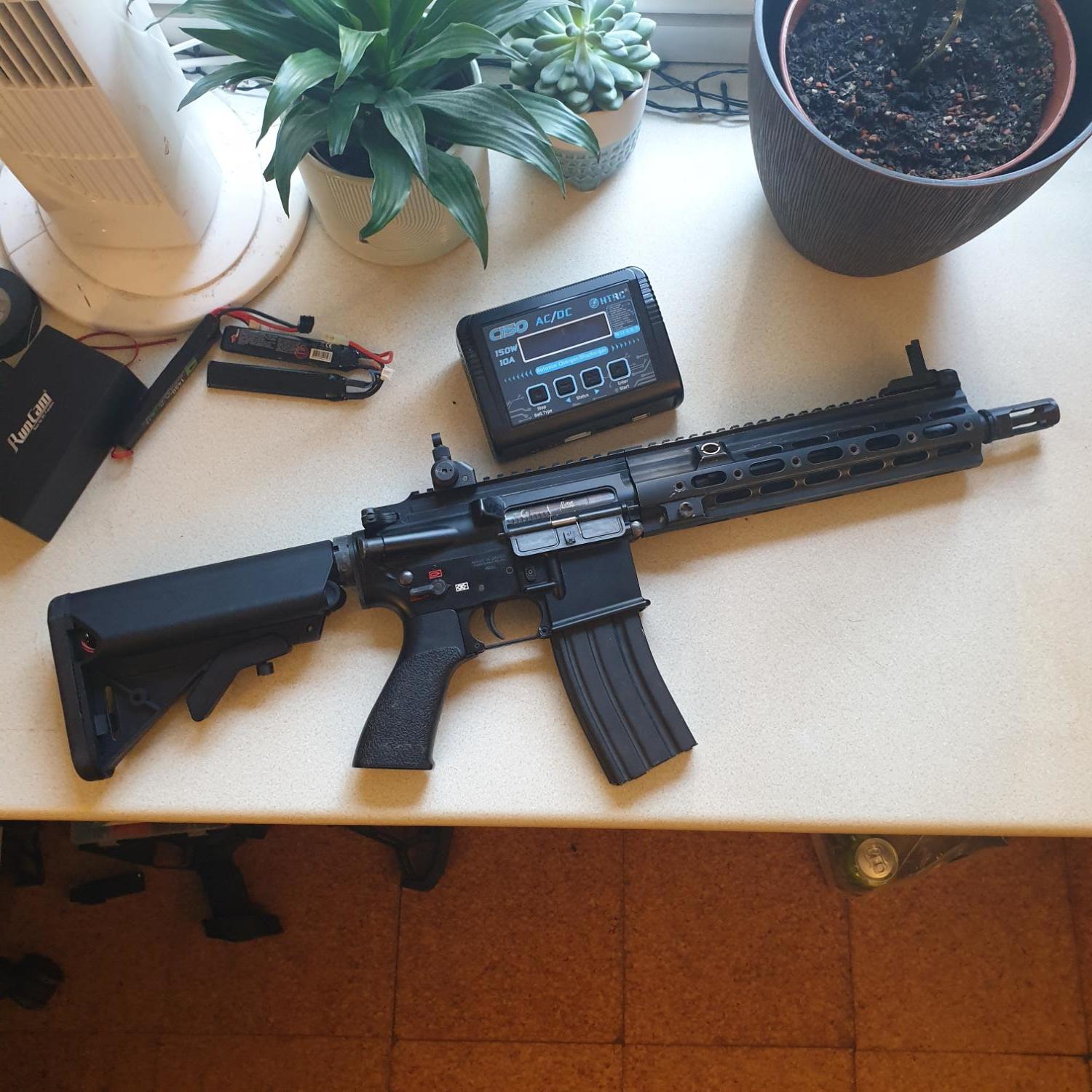 Its in used condition but shoots great, with stock internals, wired to mini tamiya by the shop i got it from, comes with 1 mag, 2 batteries, 3 original picatinny rails, and a multi charger and original box.