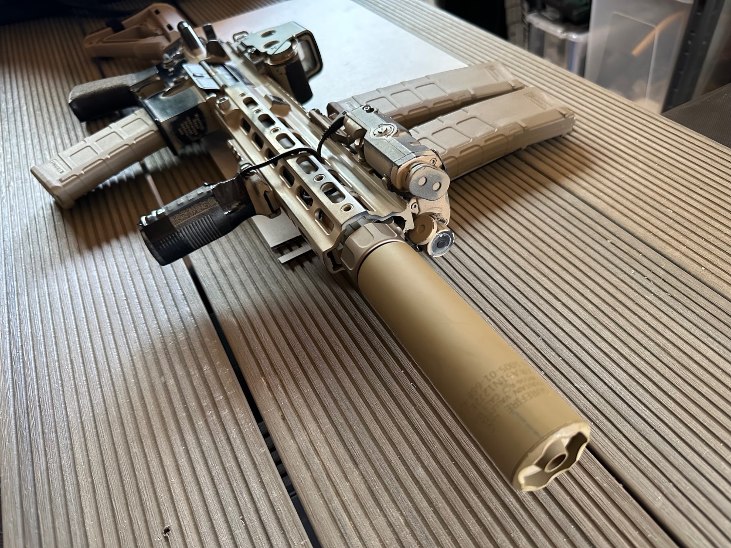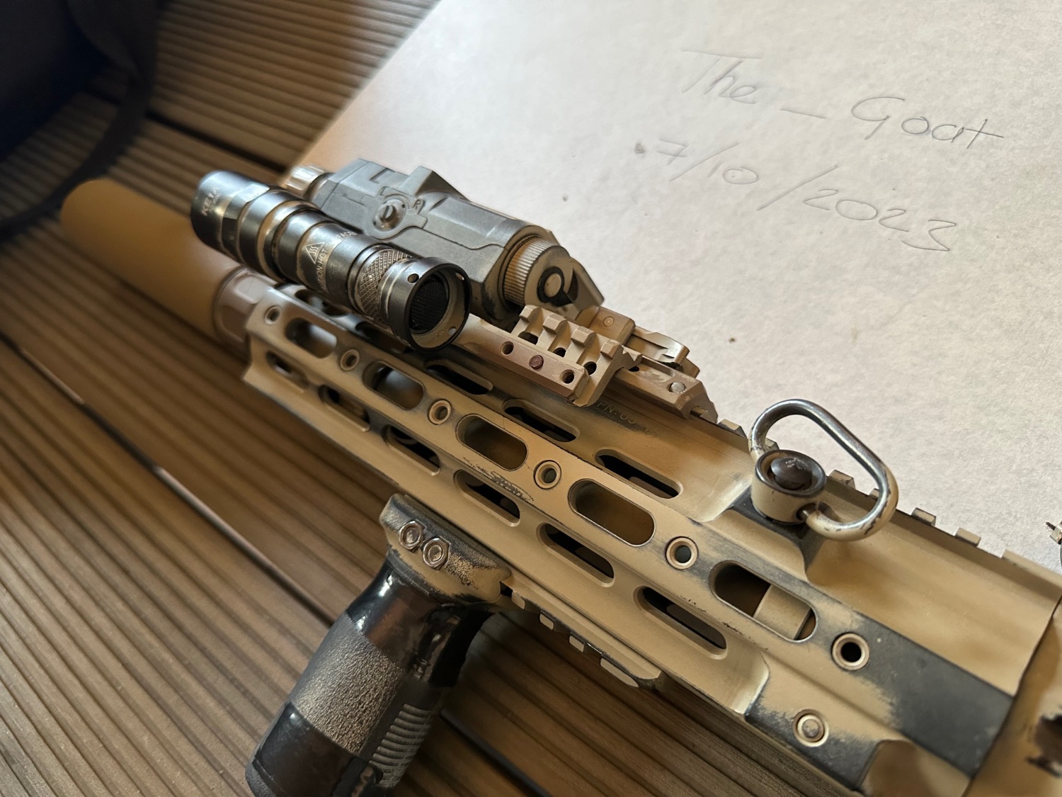 Replica Surefire M300 and PTS syndicate mount, closest thing to the unity tactical at the time. Modified to fit as standard it won’t sit below PEQ