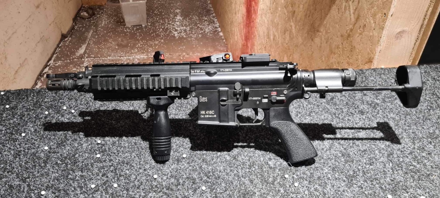 TM 416c. Bone stock as far as I’m aware, but shooting lovely. 280fps. In good used condition and comes with 6 pts epms, battery box and battery. £395 Posted!