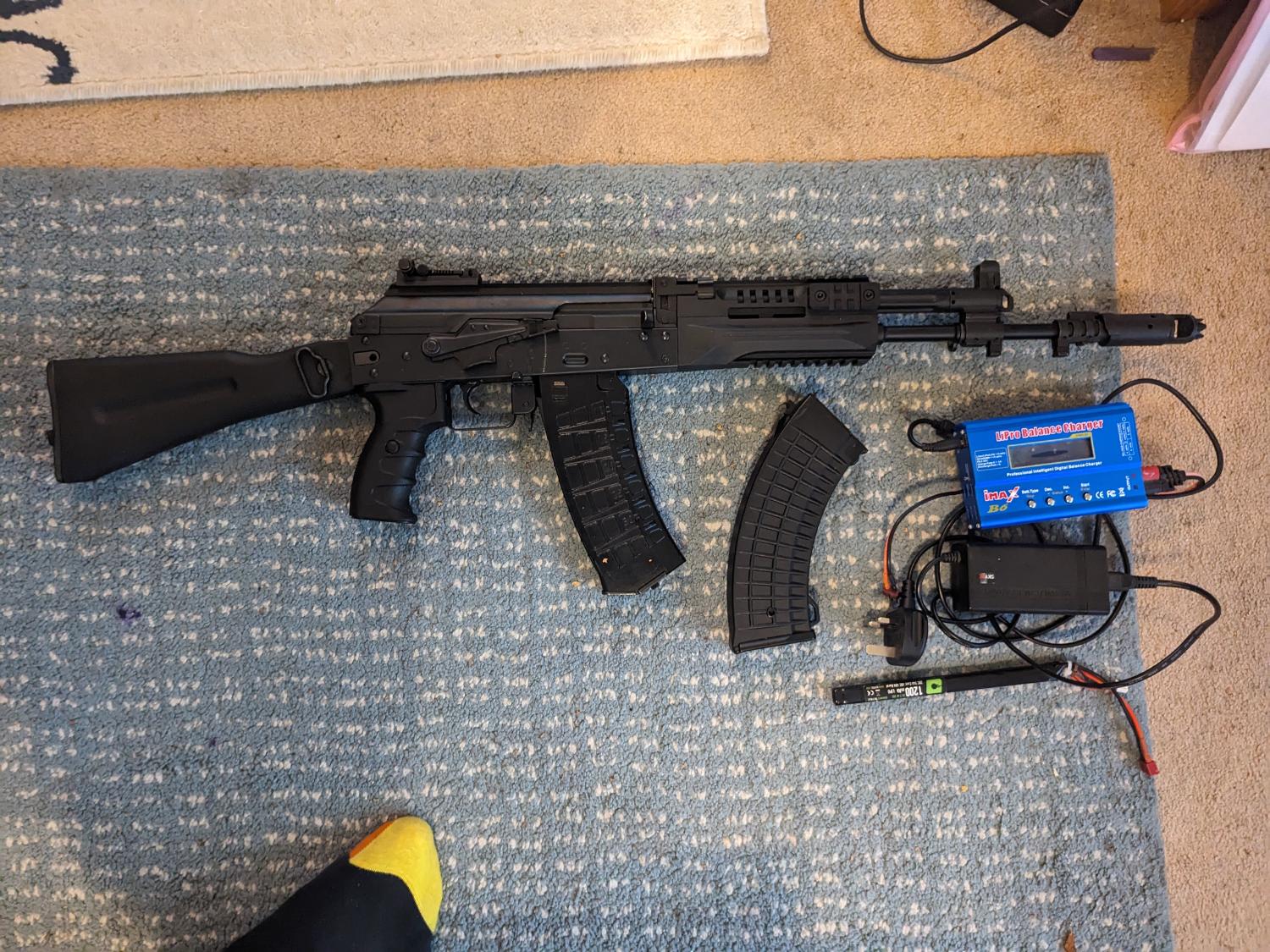 Lct ak 12 with 3 mags updated motor and inner barrel 407mm 6.02 tight bore wired to deans and will be supplied with a battery replaced the awful buffer tube stock with the classic 74 style all perfect working order with the exception of occasionally not locking into semi we all burst full anyway right lol the price is with postage included I cannot use PayPal at this time please see my reviews as trusted with bank trans happy to do cash on collection too GU29 area included now with IMAX b6 charger