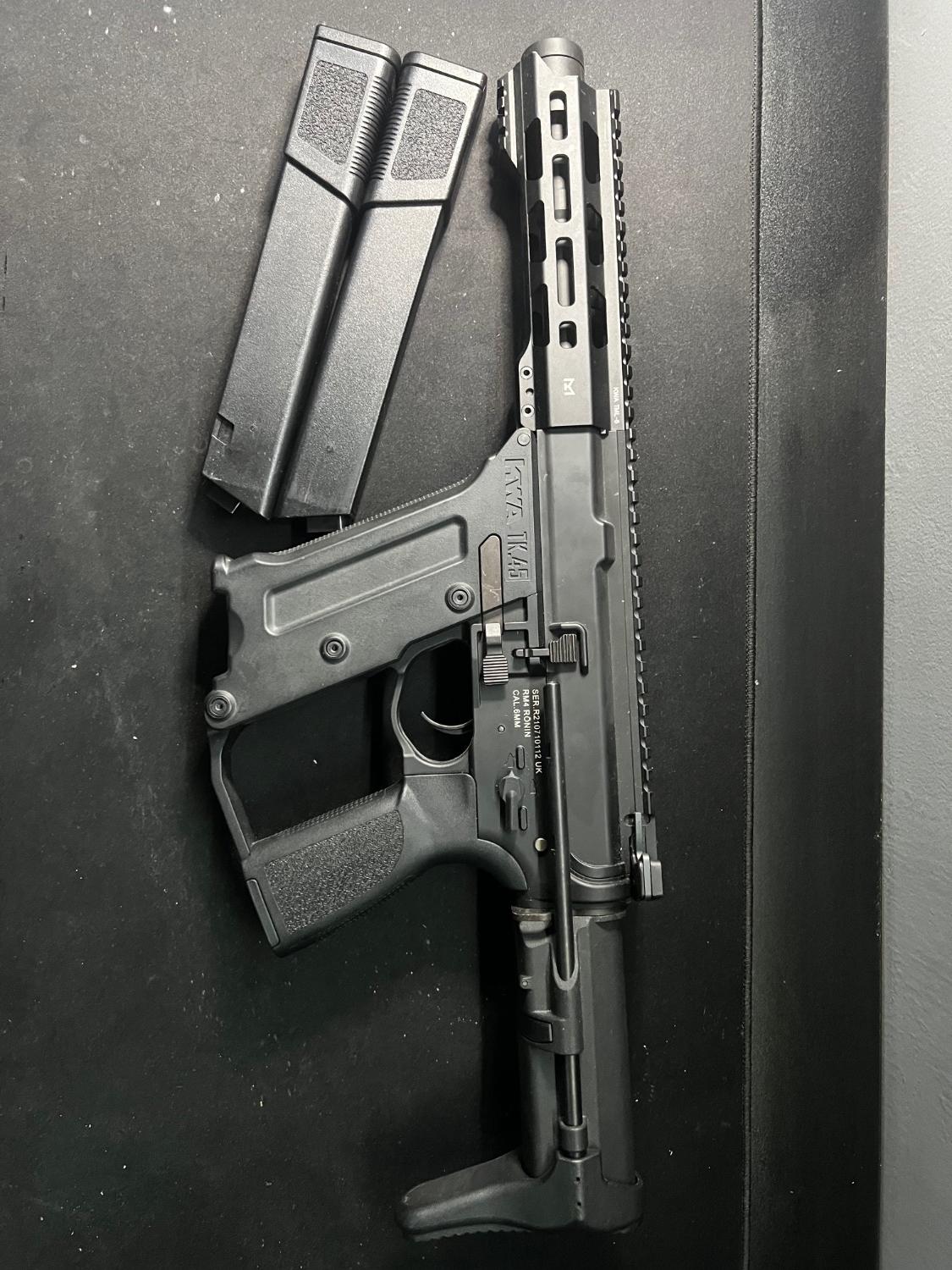 This is a kwa tk.45c which I’ve sadly only used in my garden hence the sale. Shoots great and is a cqb beast. comes with a gate titan basic installed and two 120bb mags.