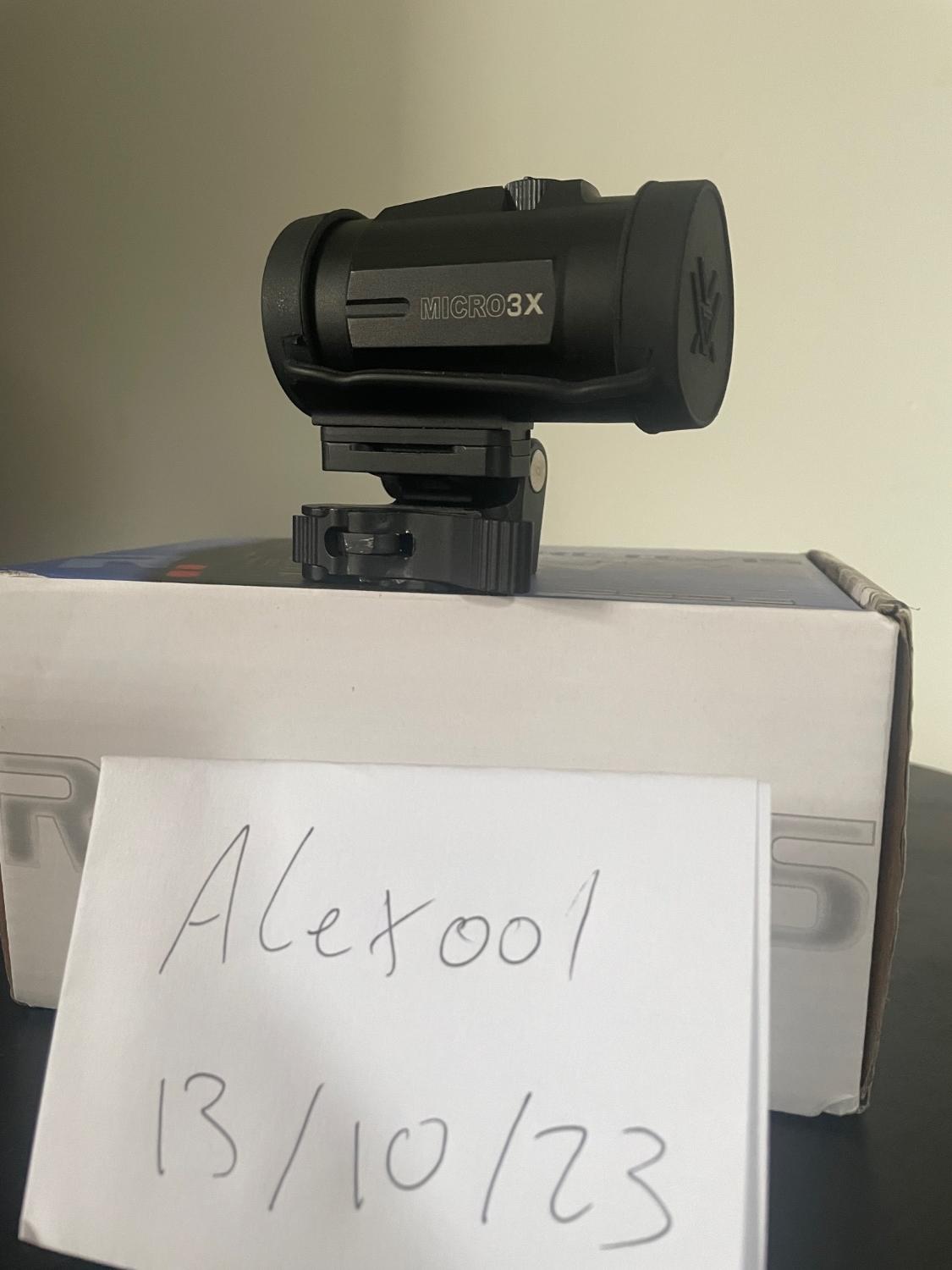 Does not include original box but comes with lense cap and spacer for lower 1/3 or absolute co-witness heights. Genuine item.