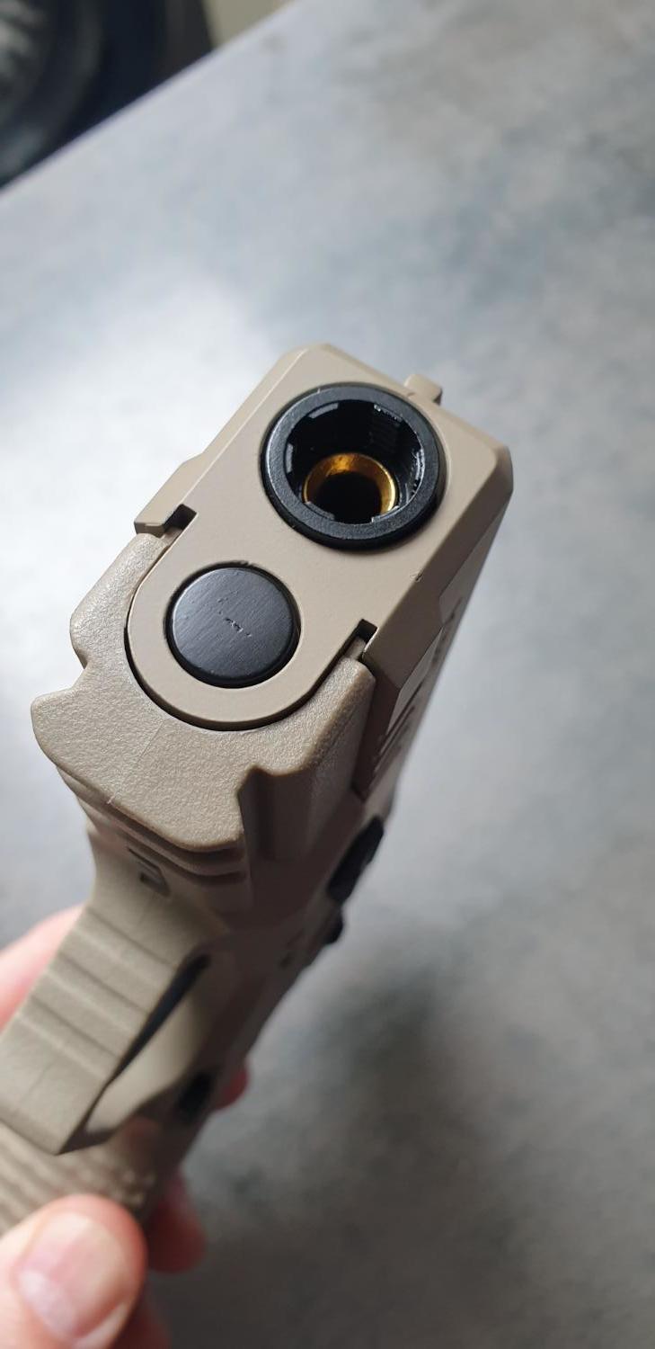 Excellent condition compact, green gas blow back pistol with trigger safety, loaded chamber indicator, really nice condition, never fielded, hardly used, some paint loss in mags and chamber from racking etc