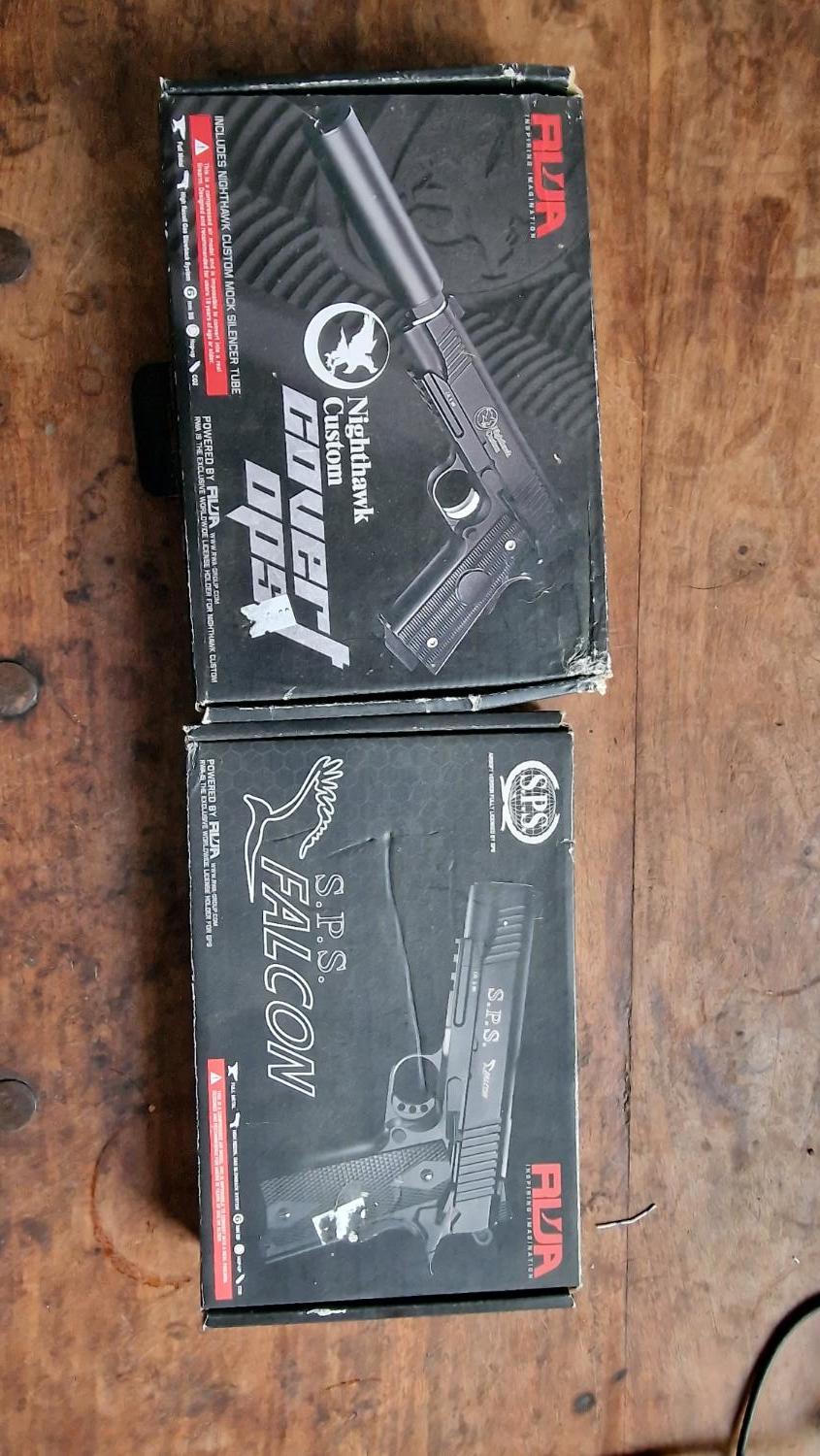 I have two completely unused and complete RWA 1911 pistols . They are CO2 so work great in cold weather with super hard recoil .
