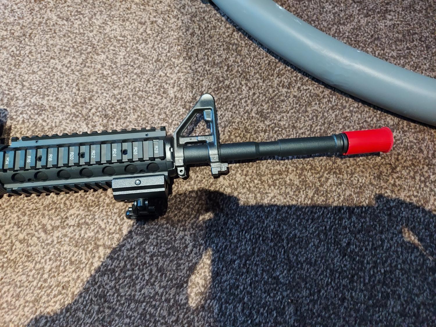 Tokyo Marui M4 Sopmod NGRS in good condition. Comes with 6 original mags. The red dot is a nuprol on a riser rail. The gun was s hopped by Combat South so will hop up to 0.32g ad shoot up to 60m. The spring is upgraded. The stock is an RS1. All in good working condition.