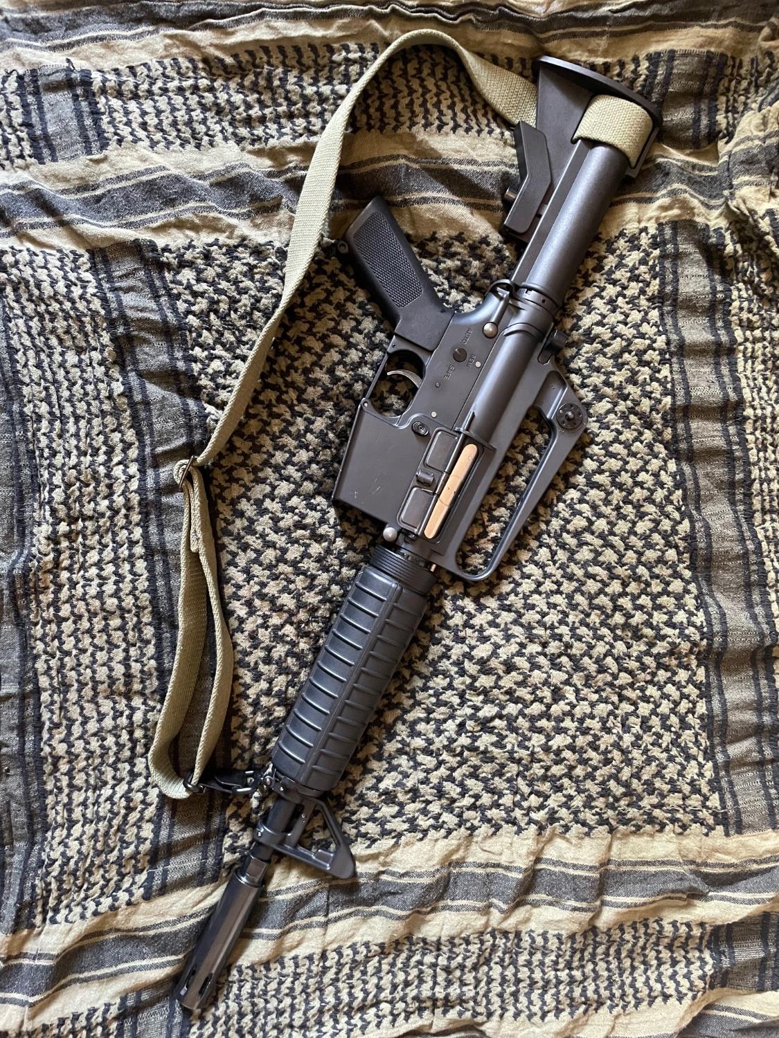 It comes with a set of CAR-15 furniture. The gun is currently set as an XM177.