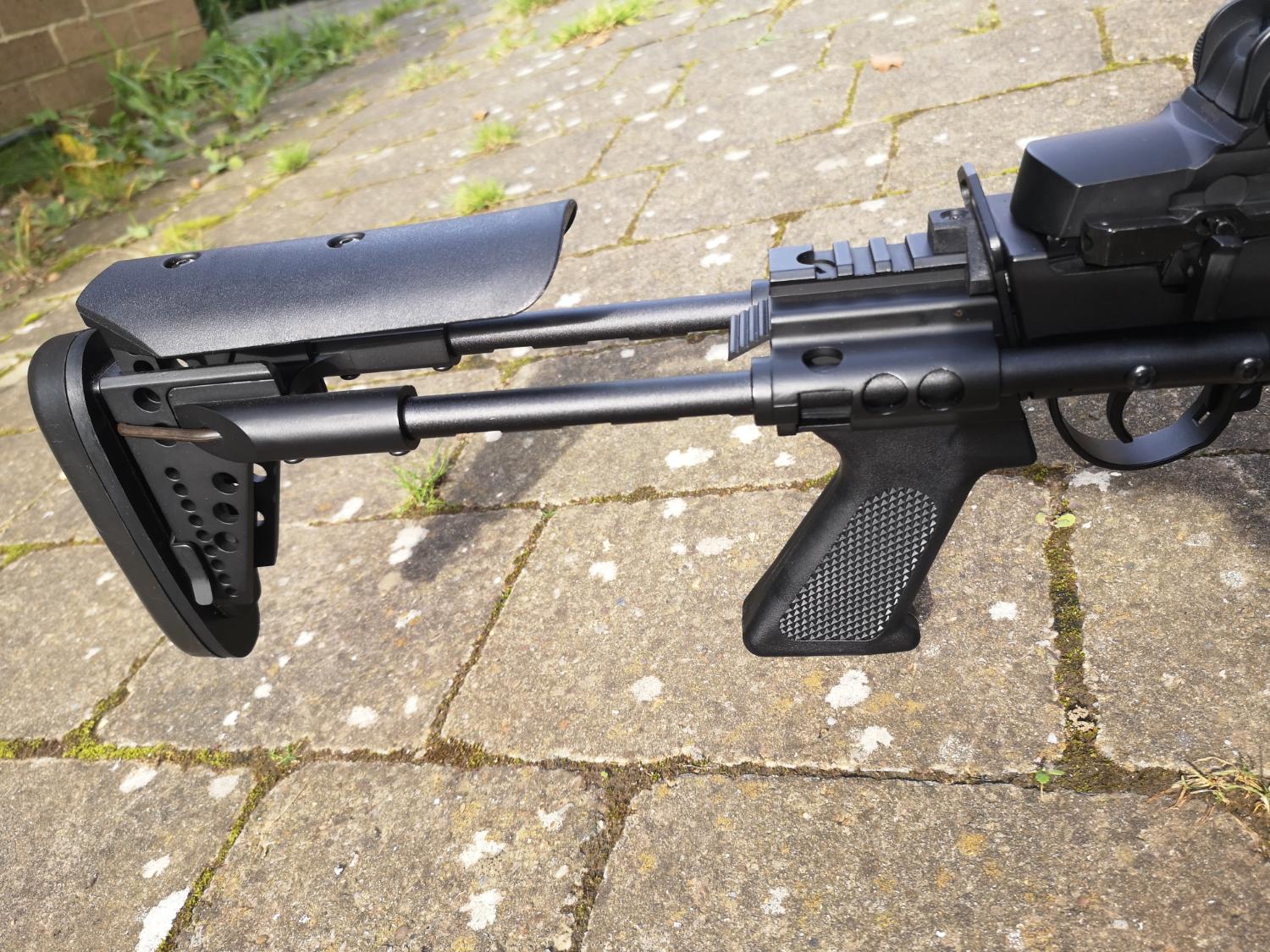 The gun shoots at 335fps with 0.2g bbs with the hop unit at its lowest setting. Everything on the gun works as expected (sliding stock, cheek rest, bolt lock, selector switch)