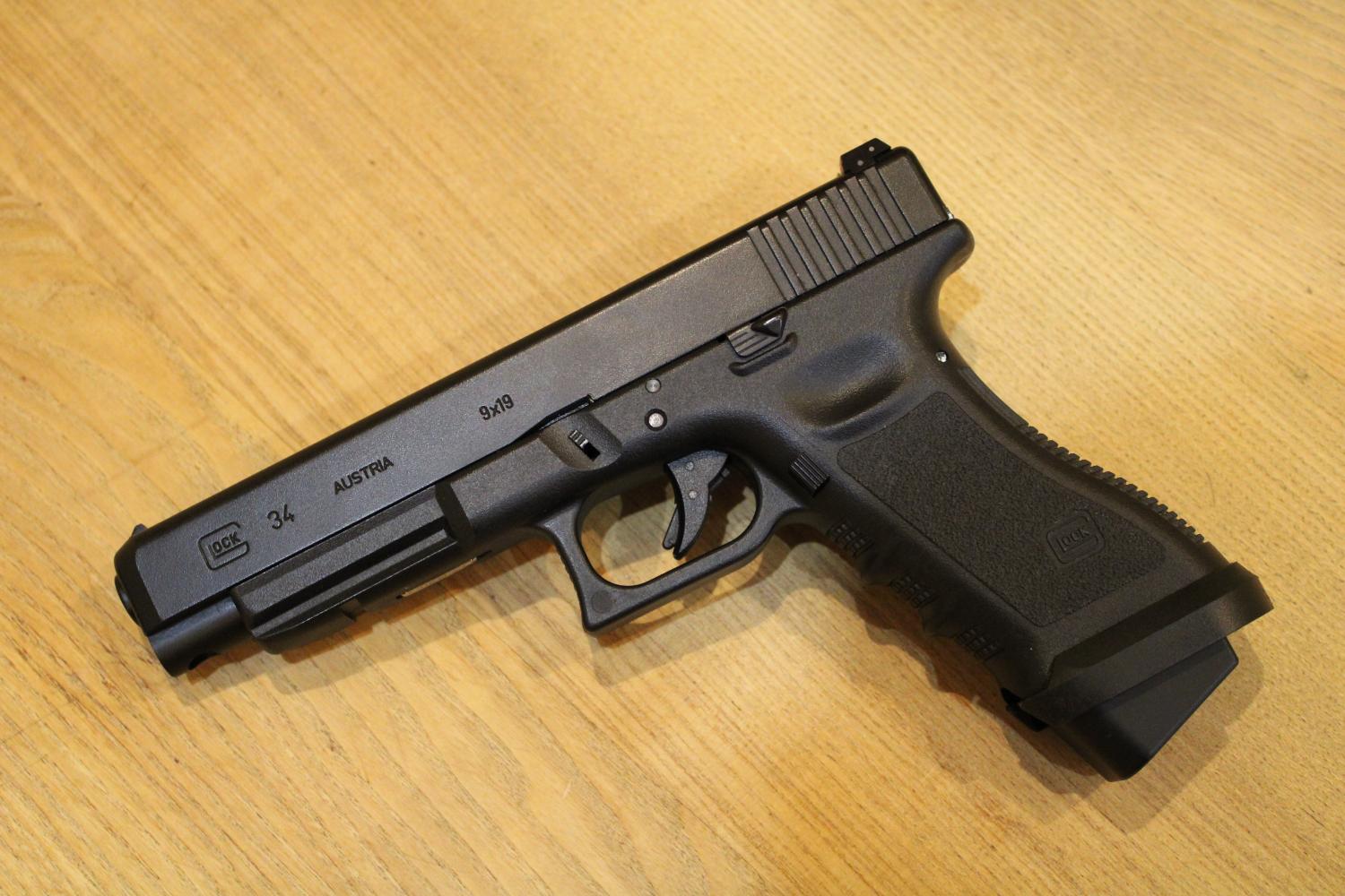 For sale is a TM Glock 34 in lightly-used condition. Overall the pistol is pretty similar to the G17, but with a longer slide and outer barrel, adjustable rear sight, and an extended slide release. The gun is fitted with three basic Guarder upgrades: