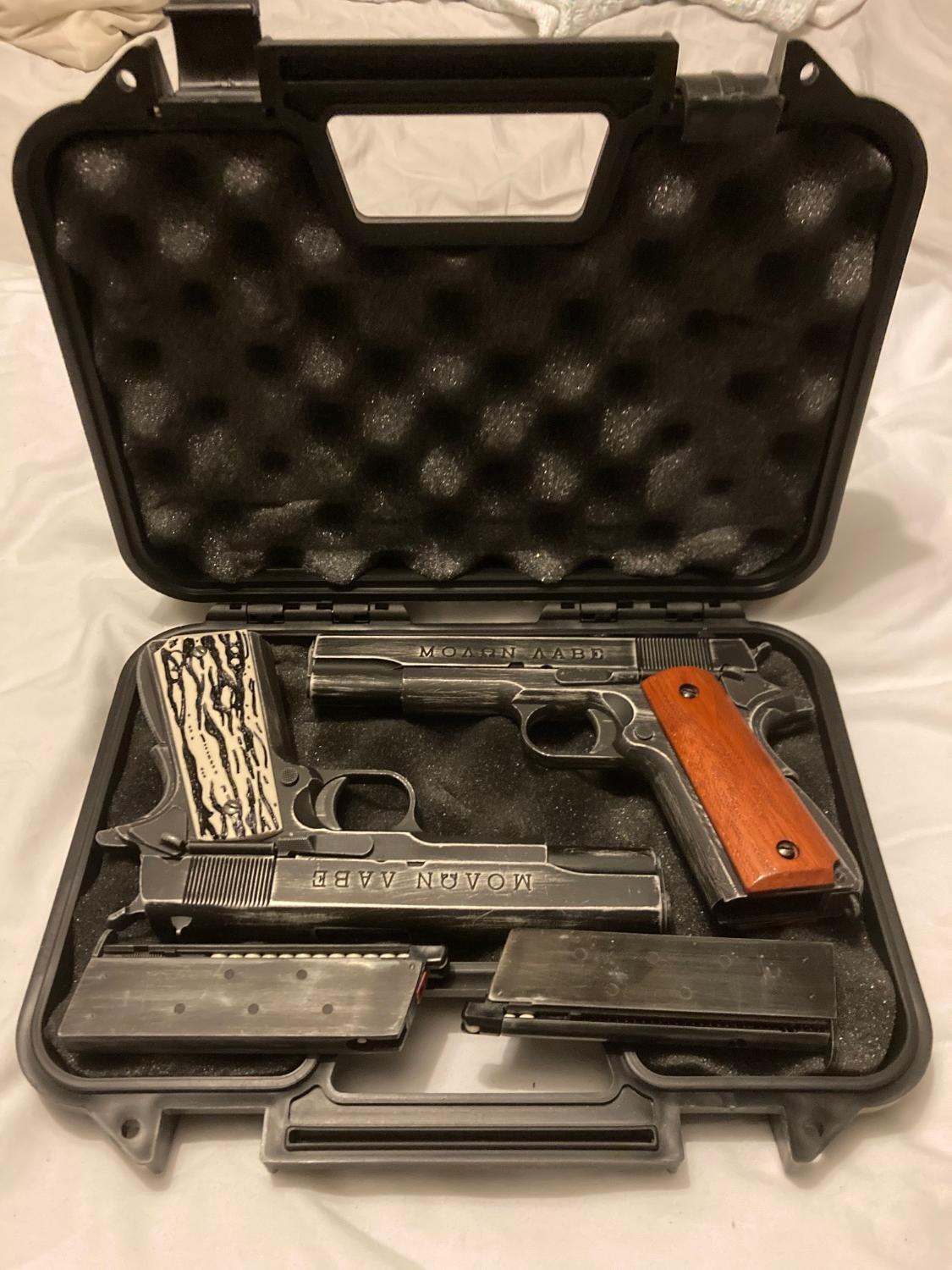 I have 2 Armorer Works MOLON LABE 1911 for sale, both in full working order, they come with 1 mag each and in a case. Selling as a pair but will split if price is right. £10 p&p