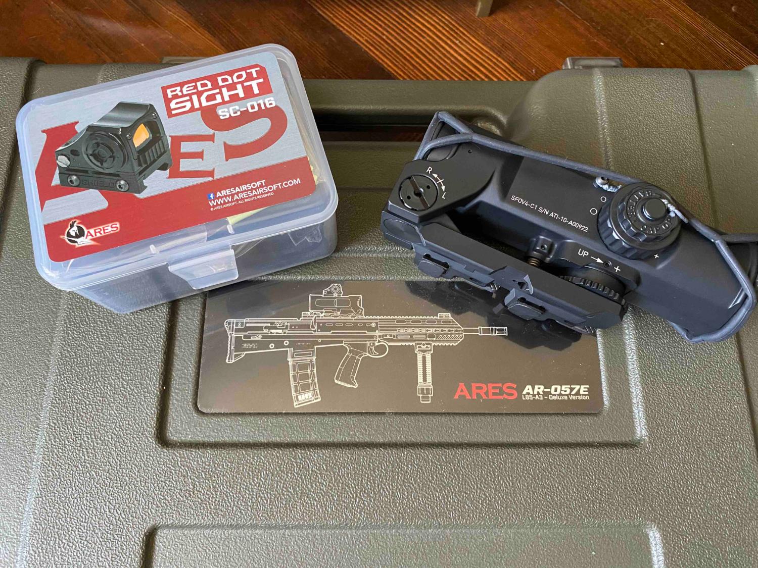 Brand new ARES Red Dot Sight for Elcan scope, to go with L85A3. Bought together with the Ares L85A3 Deluxe Edition. Never used.