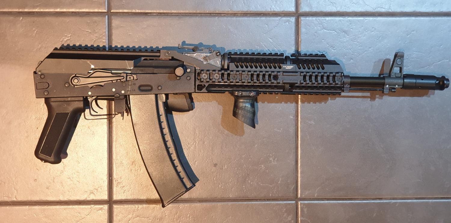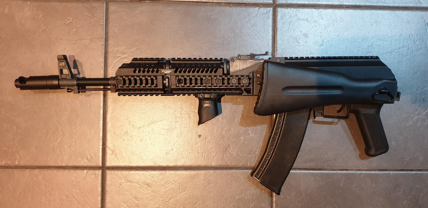 Cyma AK74M with 5ku zenitco replica b30/31 top and bottom front rail system and b33 picatinny dust cover.