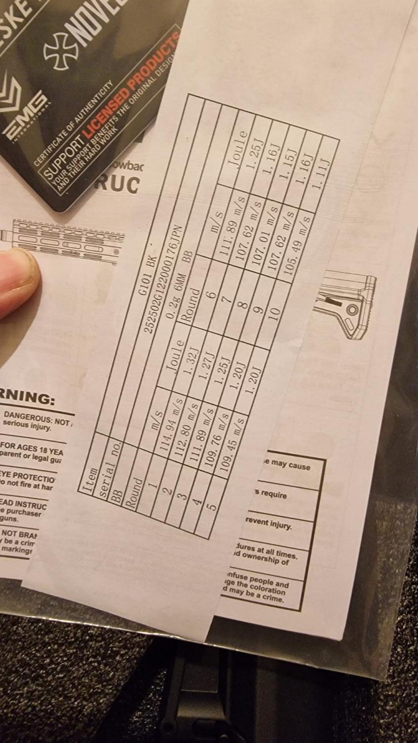 Power it's around 1.1j with 0.25g but I recommend using heavier BBs and fitting npas .