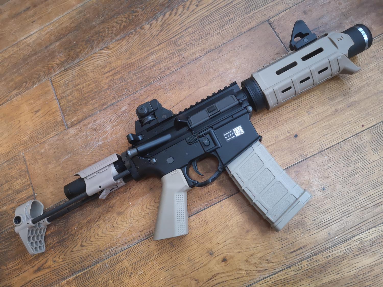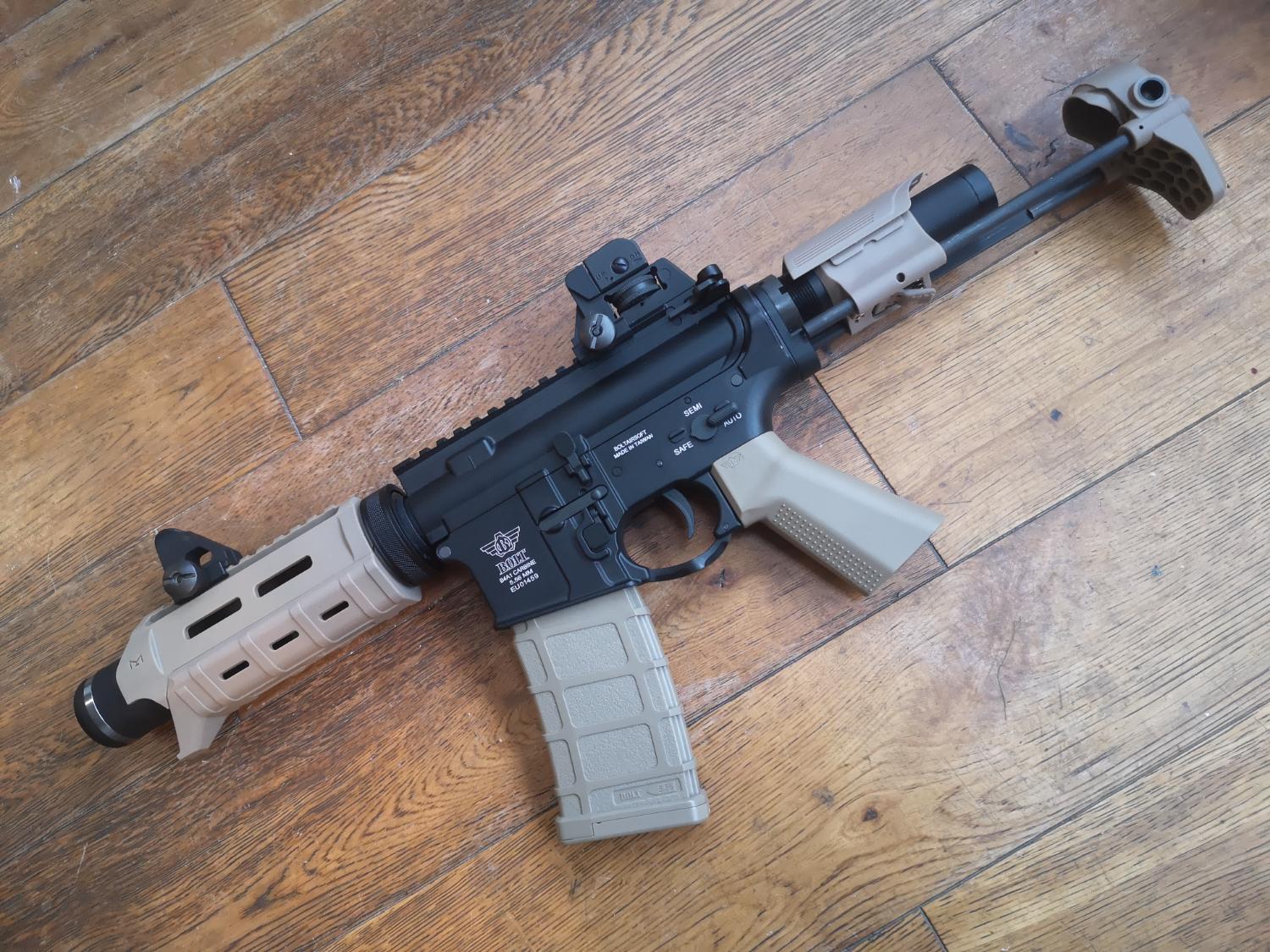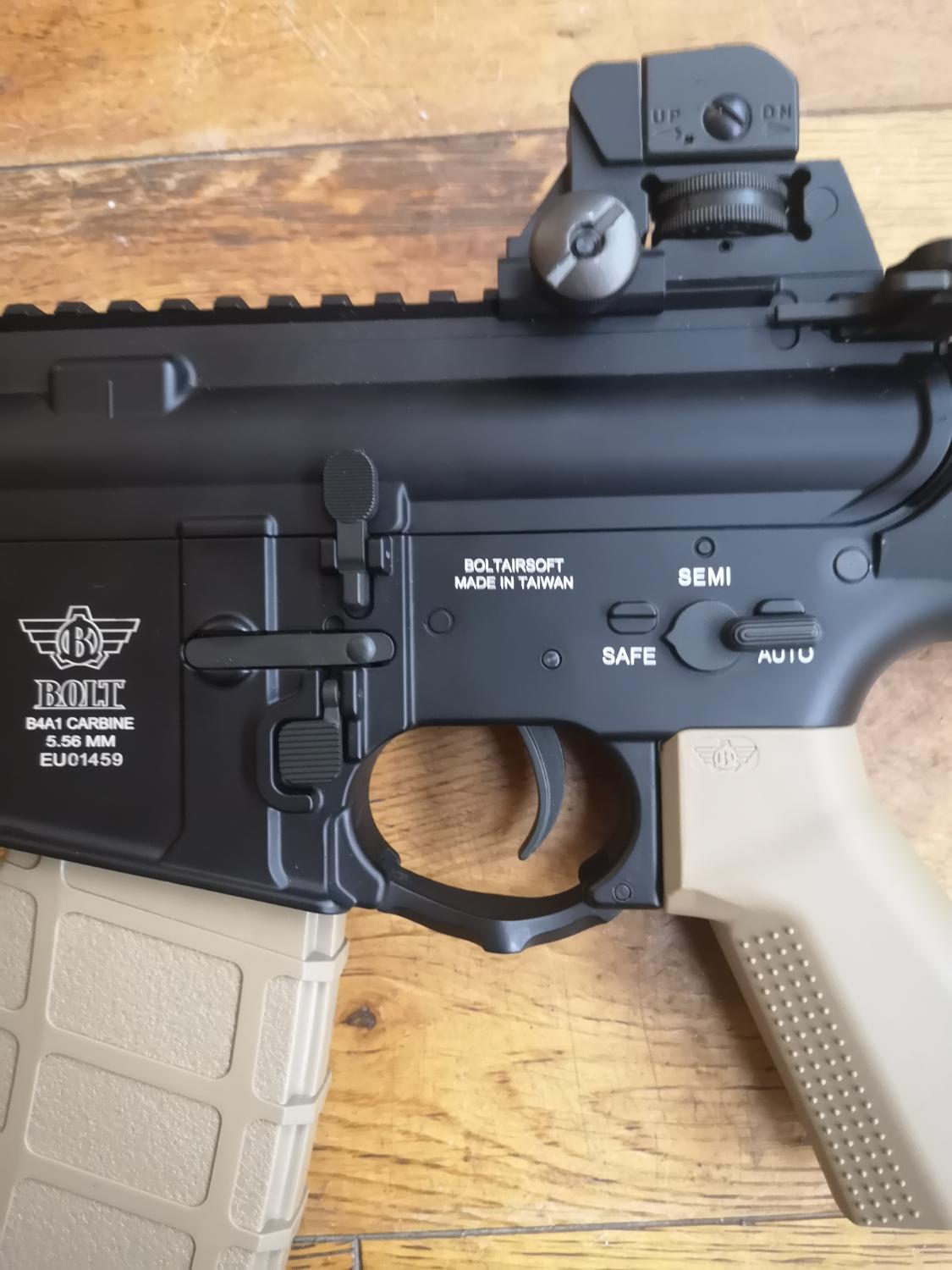 This is my bolt B4 pdw in very good condition. Black and tan. It shoots and feeds well and chronos at a very consistent 338 fps with 0.2g bbs.