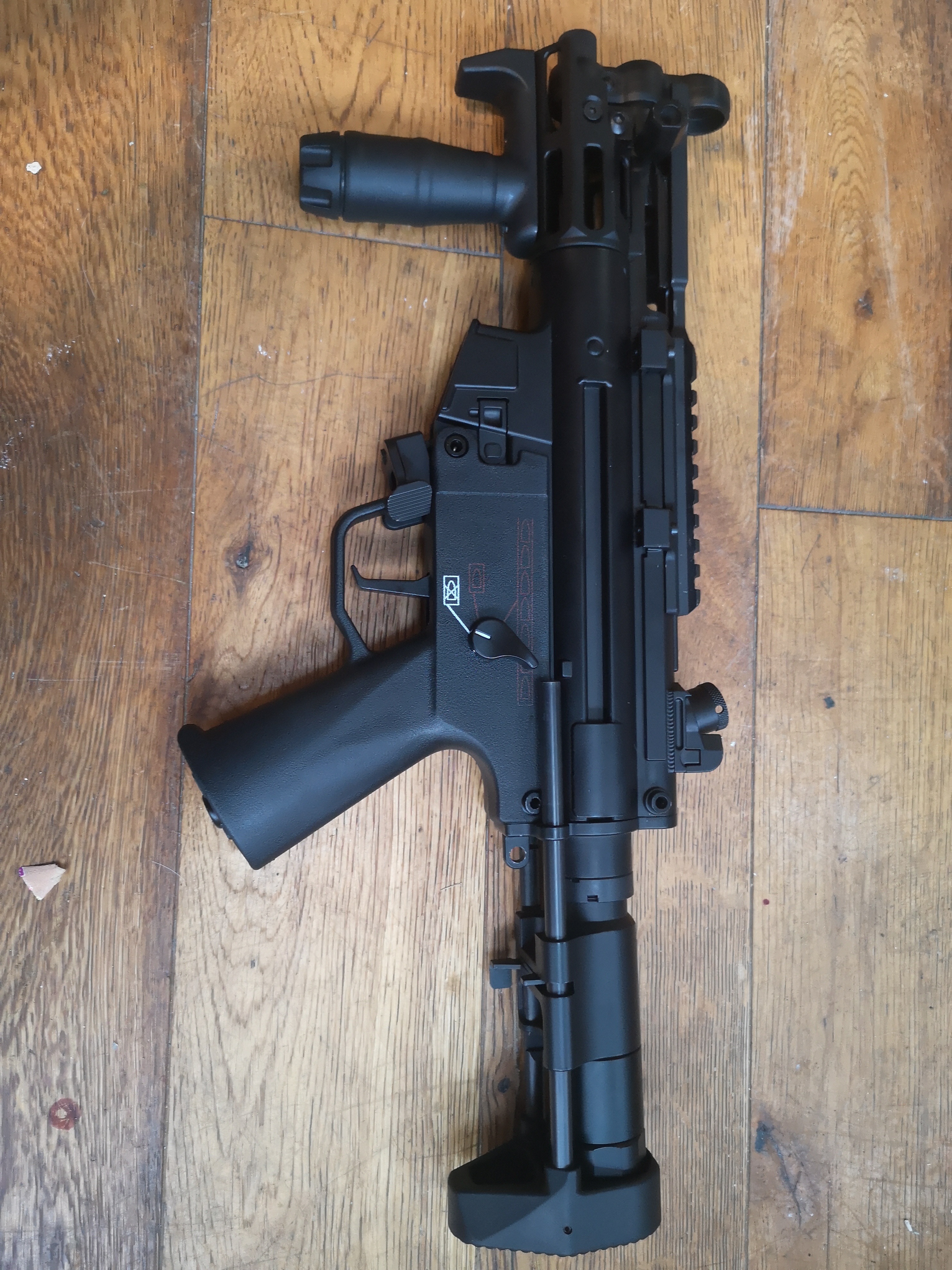 Boneyard cyma platinum mp5k. There's no wiring loom or mosfet with this. Everything else is there. Doesn't come with a mag. Externals are in excellent condition. It's comes with the longer foregrip rather than the stubby one it has as stock.