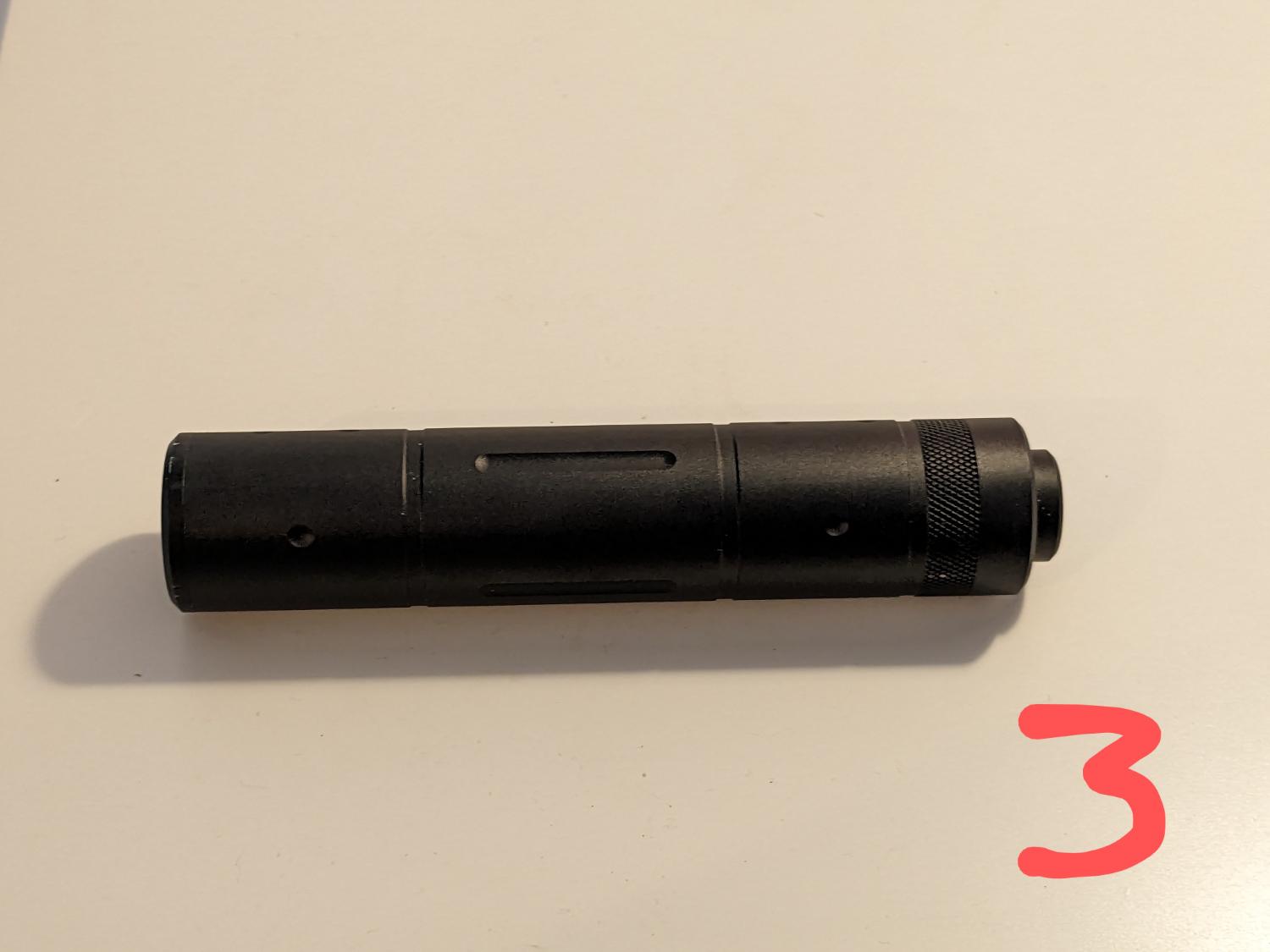 3. 14mm CCW suppressor (15cm L 3.2cm W) Sold
