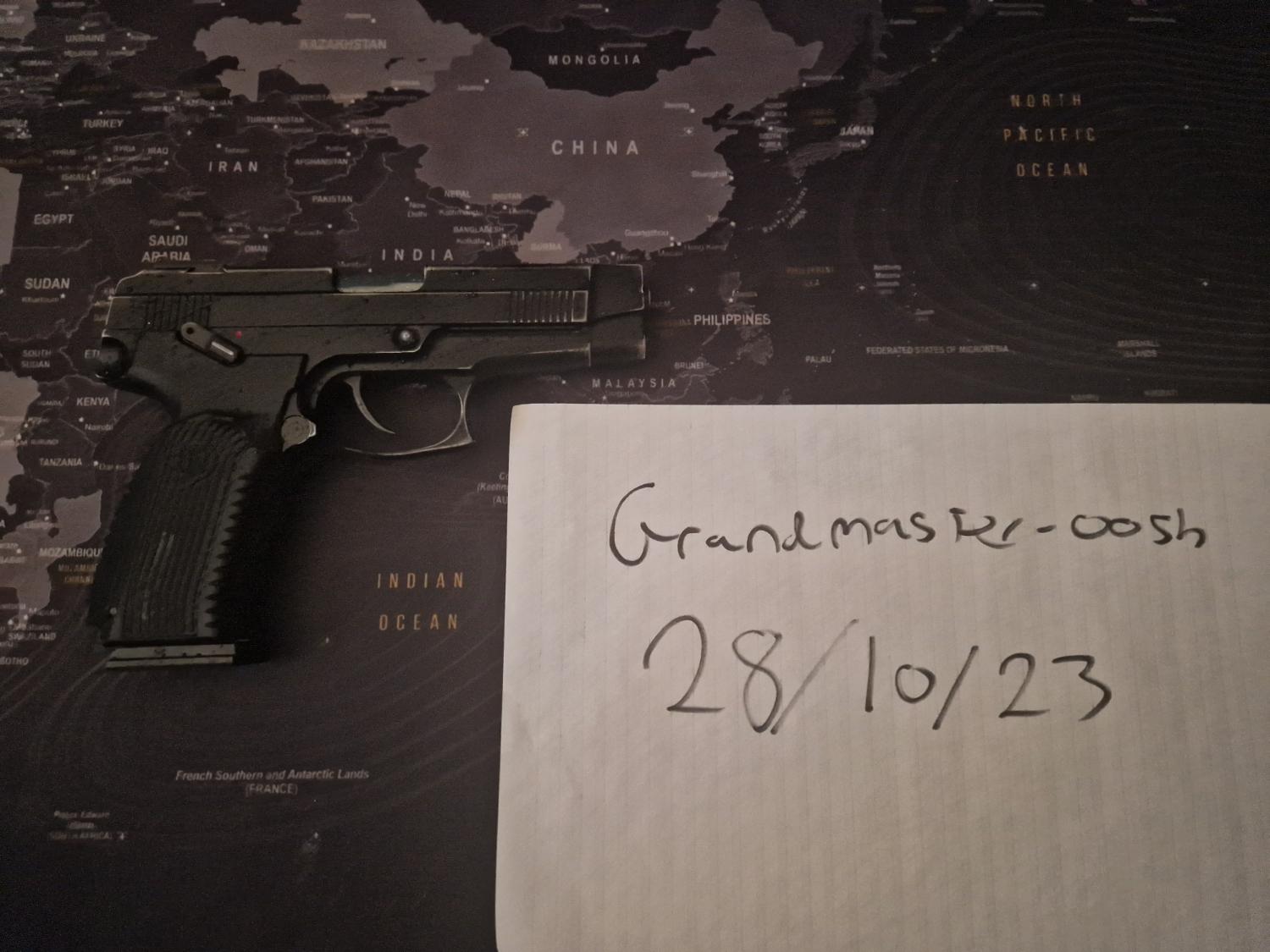 Mp443 Raptor, it was sold to me by someone on this forum as working but with a leaky mag. Leaking mag fixed but when filled with gas and bbs it just squirts gas down the barrel upon pulling the trigger. Apprently its been fitted with the v2 trigger and hammer, and the original parts are in the box. I paid £65 for it and I'm looking for £50. If I don't have any interest I'm happy to keep it as a wall hanger.