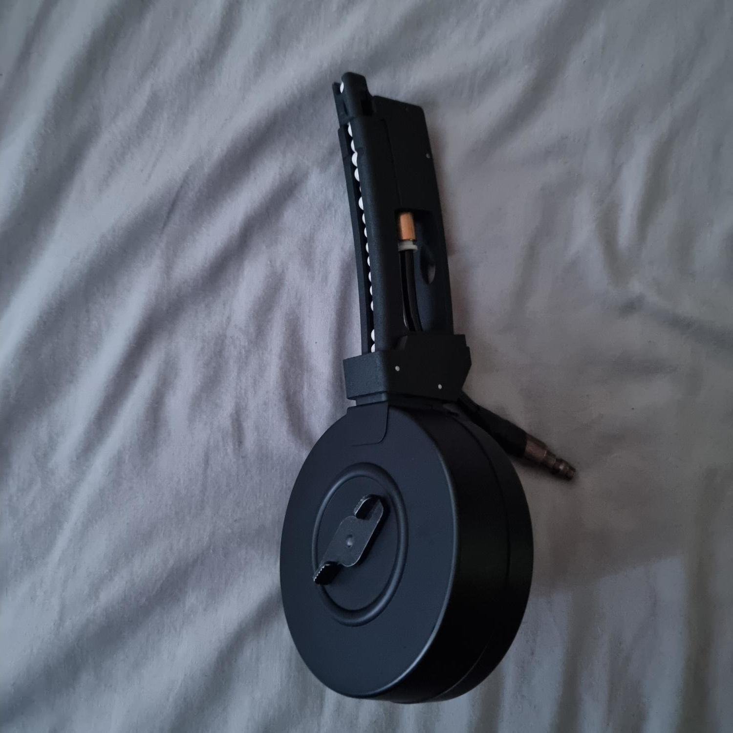 TM MP7A1 with Airtac HPA drum mag comes with the gun, 40rnd mag (that has been disassembled for the drum mag), Airtac hpa adapter, TM 400rnd drum mag and original box.