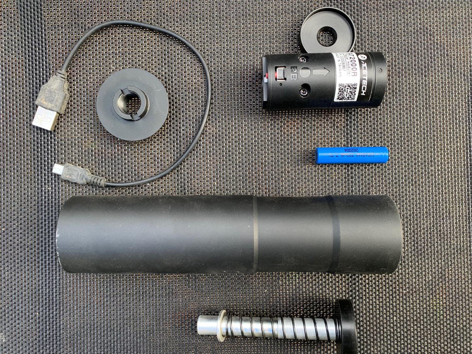 Includes rechargeable battery and USB charging cable.