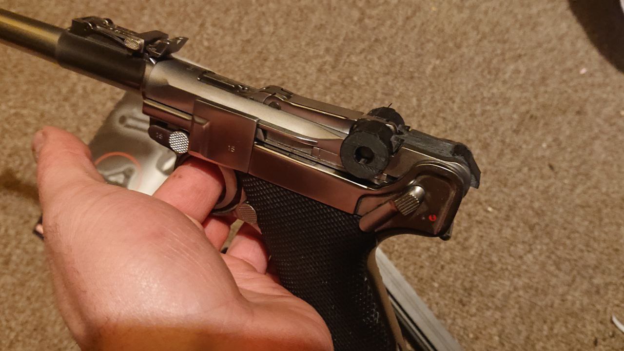 Got this in a job lot of stuff and tried to fix it. The original toggle was shattered so I started 3d modeling and printing one. It does blow back with this printed one but its a little too tight to go back into battery and I dont have the correct pin to connect it to the bolt. If anyone is interested ill include the file for the toggle so far with this. The other lower looks to be brand new. Price includes paypal fees and postage.