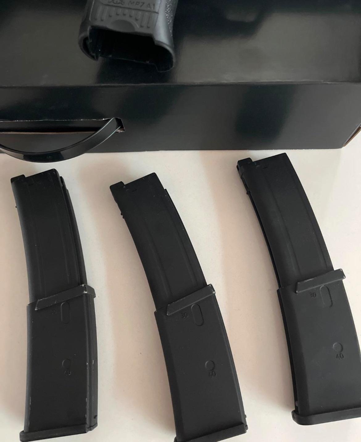 3 magazines, a sight and thread adapter (12mm-14mm)