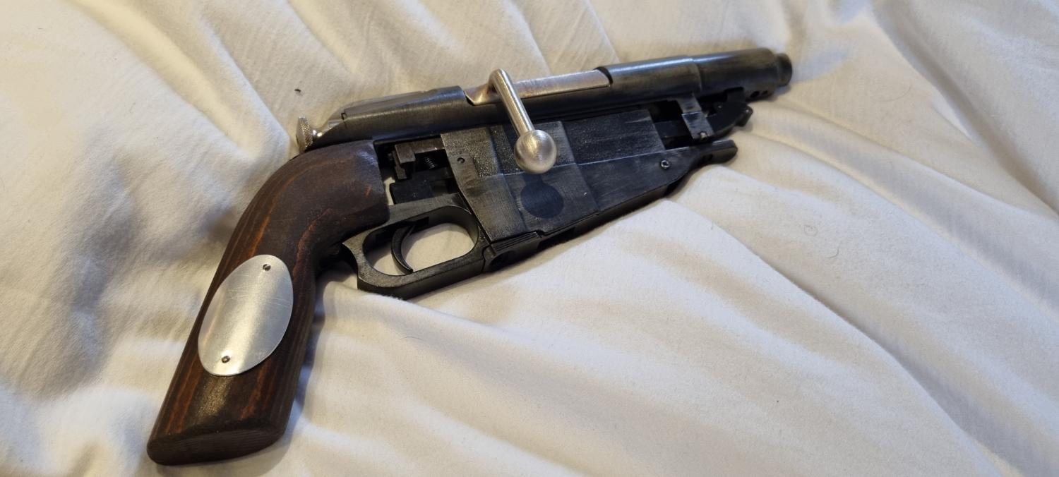This is an exact replica of a variant of the Obrez, with most work done by the famous Showguns in Hong Kong. A one-off, you wont find this anywhere else! Based of a PPS Mosin Nagant, it operates fine, just dont expect good performance since the barrel isn't longer that an inch!