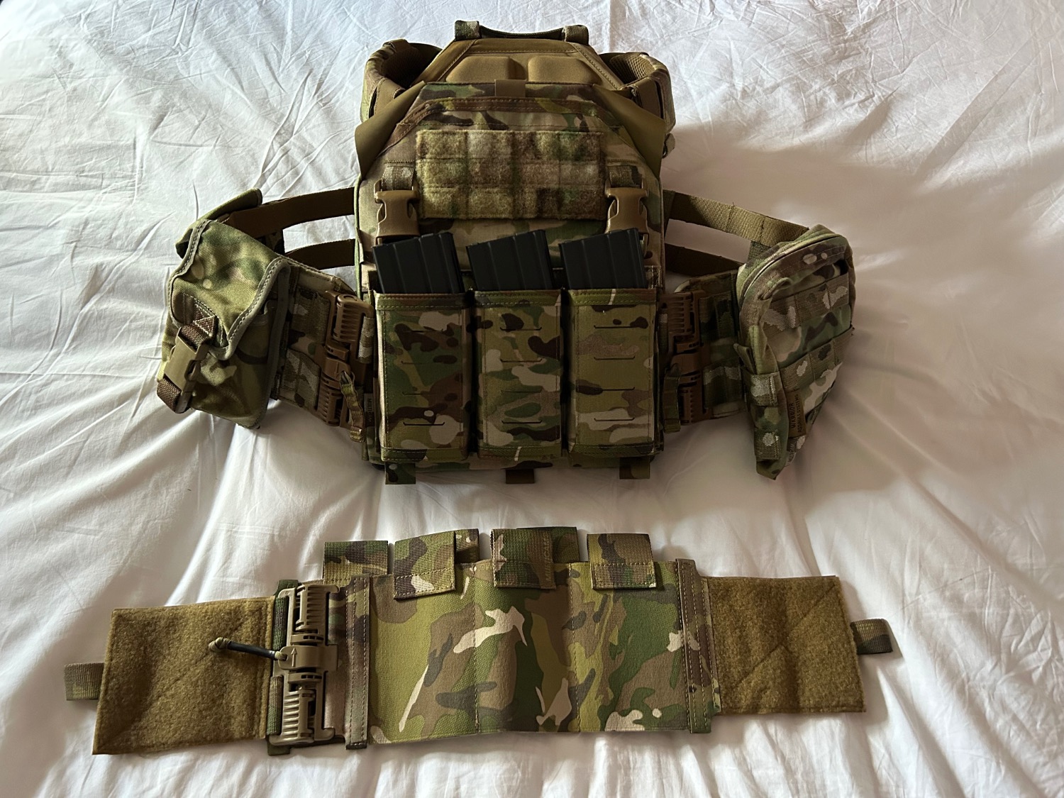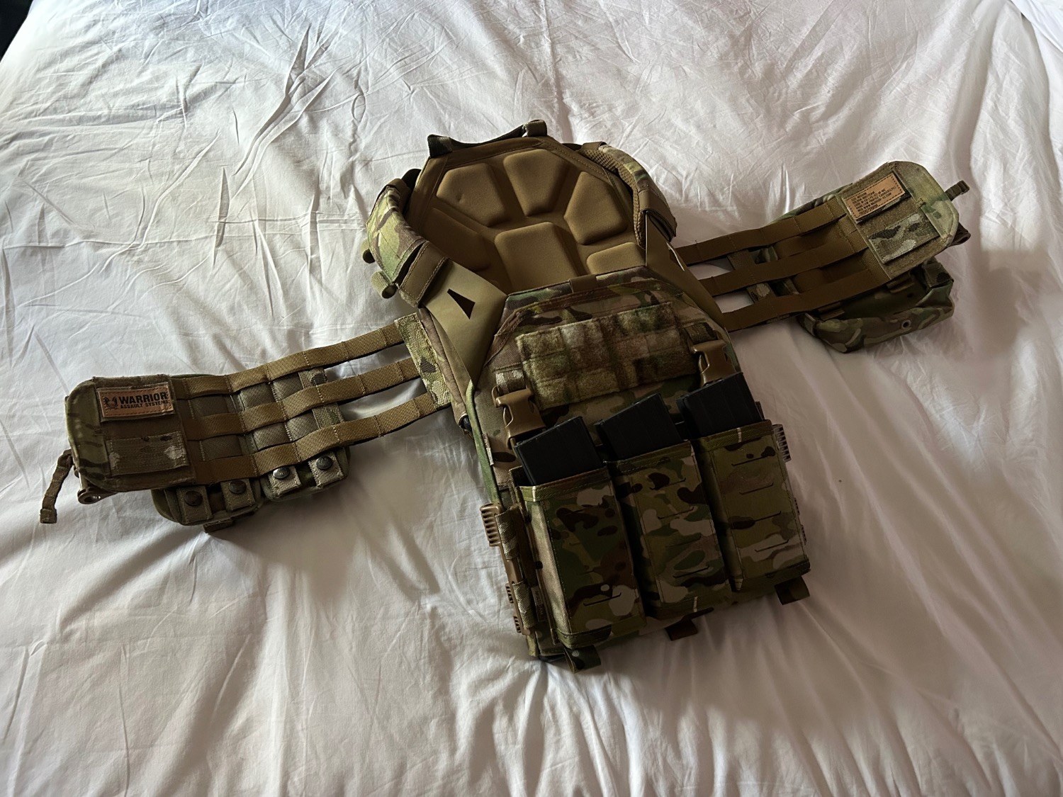 Viper flat pack, warrior triple mag placard with kydex inserts, admin pouch, 2x grenade pouches, original soft inserts, 2x Emerson SAPI plates, LPC V2 ladder cummerbund, 2x elastic triple mag cummerbund.