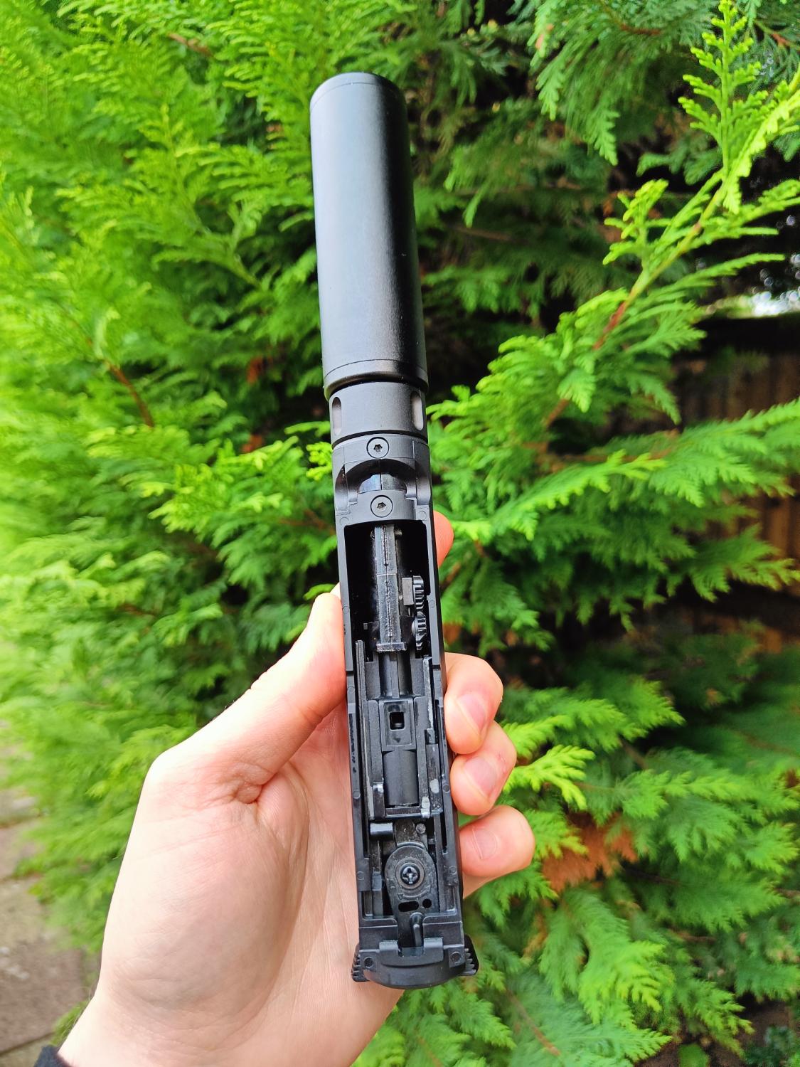 I took a brand new AAP-01, added a CTM flat adjustable trigger, CTM lower in ranger green, a special raised sight suppressor adapter (can be used for tracers too) and mock suppressor.