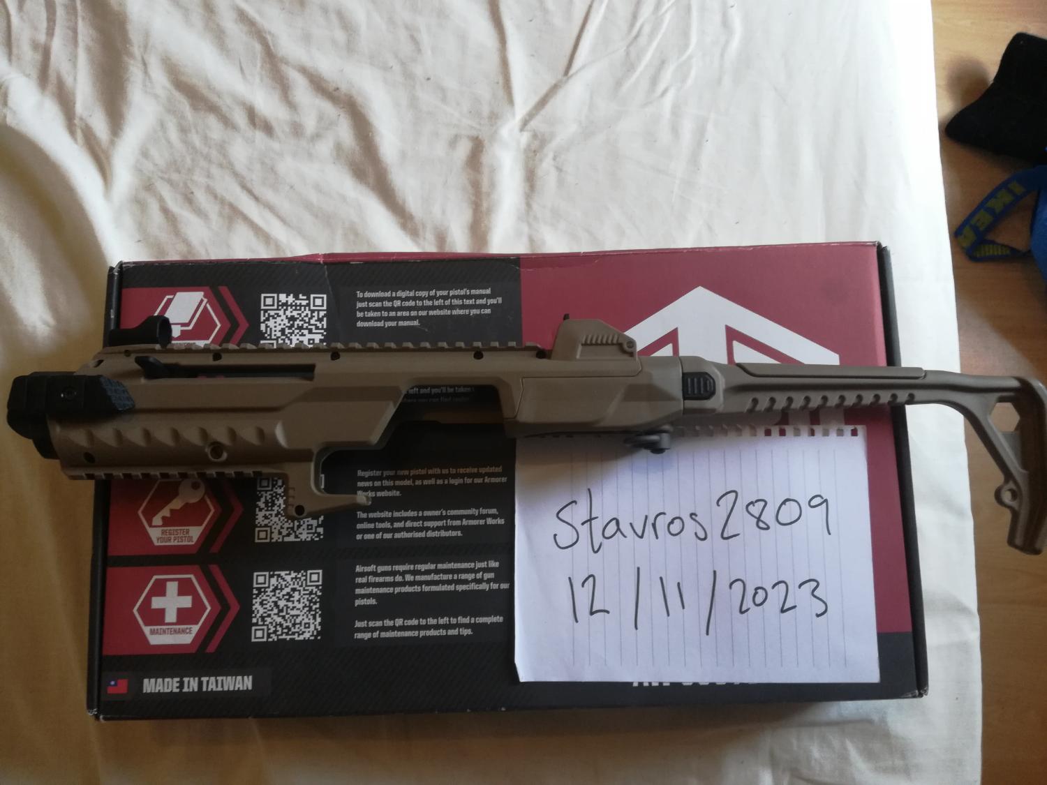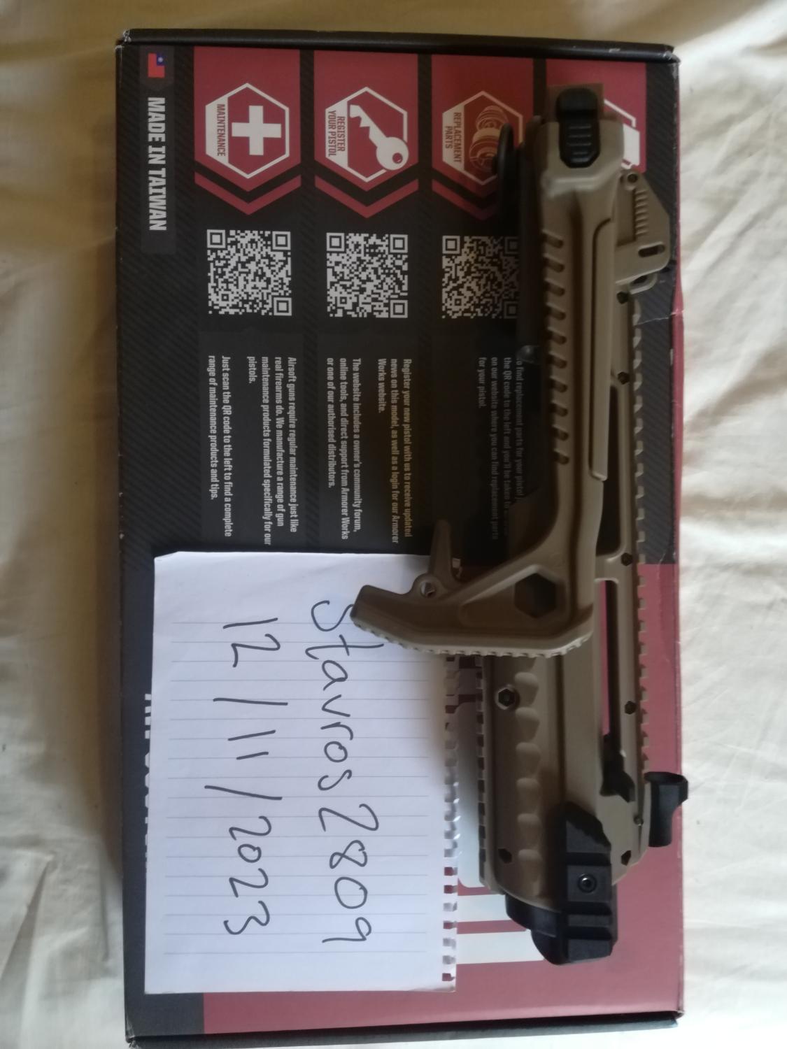 Hi all. I have for sale a ARMOURER WORKS carbine conversion kit for G17/18 style pistol (pistol not included) in FDE. The kit is brand new and never used save for a few test shots. I bought it thinking I would use it but never got round to it.