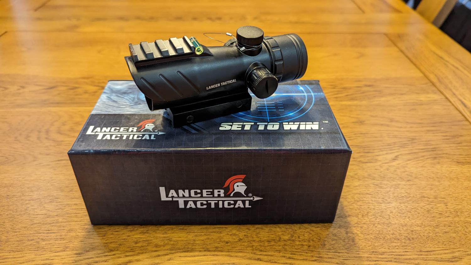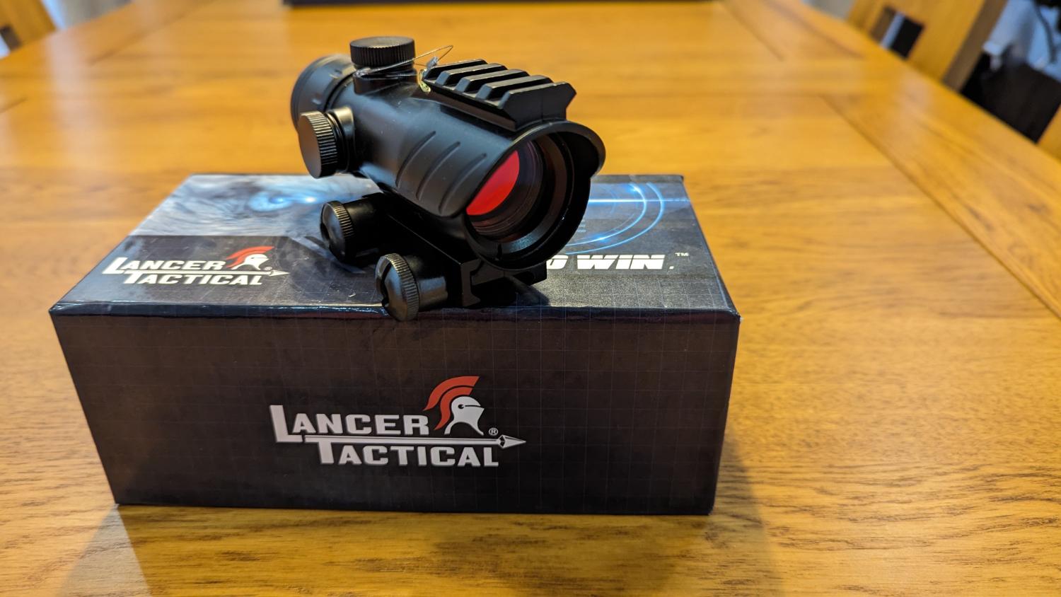 Lancer Tactical red dot. Used twice. glass in perfect condition. Battery and cleaning cloth included.