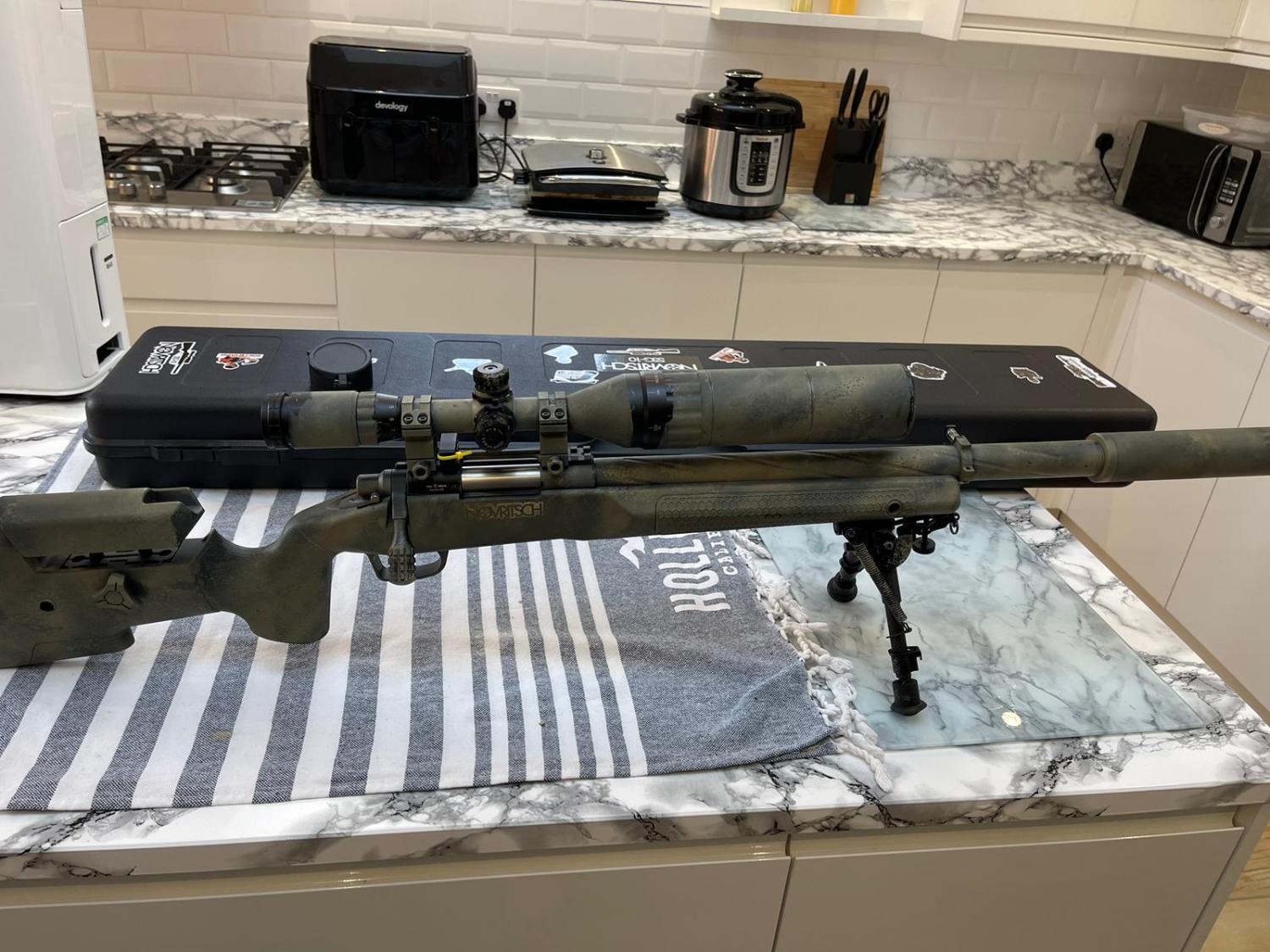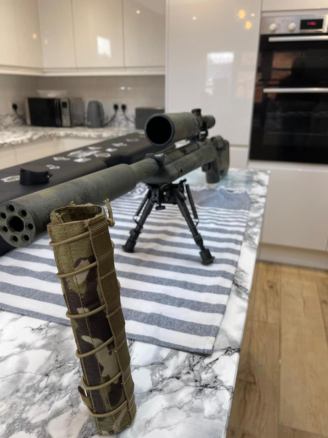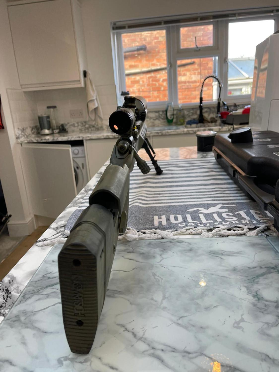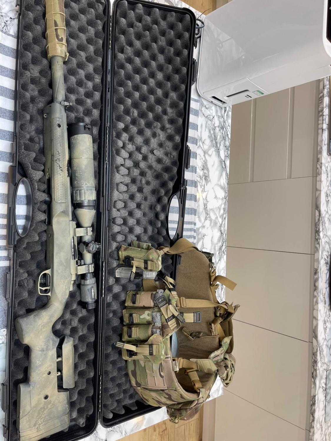 Novritsch SSG10 a2 comes with 5 mags with Novritch pouches belt not included in the sale . It comes with long and sort outer barrel and Novritch suppressor included a cover for it . Novritch scope with double extender . New hopup and m130 spring been serviced and ready to go . Custom paint job and case included in the sale . 400£ collection from Nottingham or special delivery buyer pays for postage. Please message Antonis 07778 809750