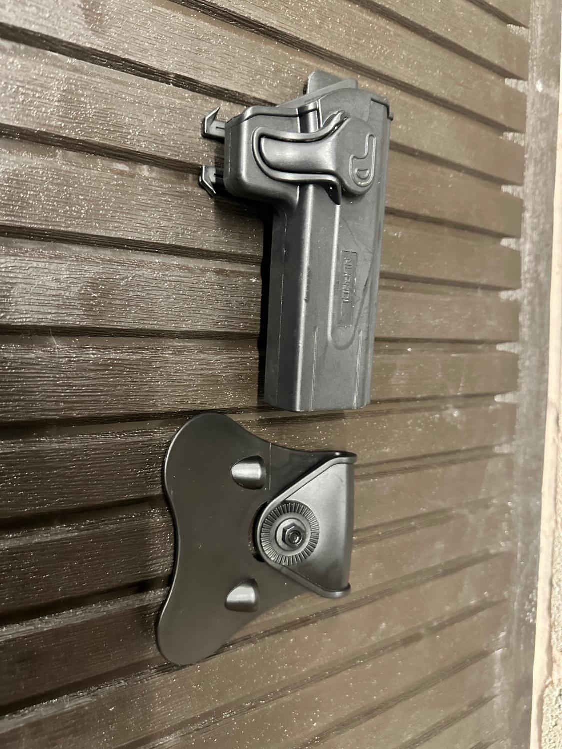 Hi-Cappa holster with waist base and molly base so can have it chest or waist