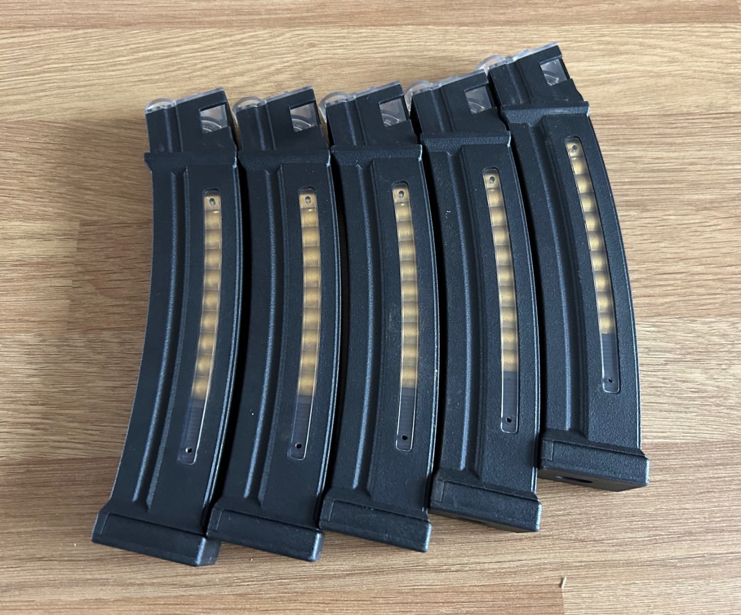 It comes with five of the excellent CYMA 130rnd Polymer SMG5/SMG5K Magazines