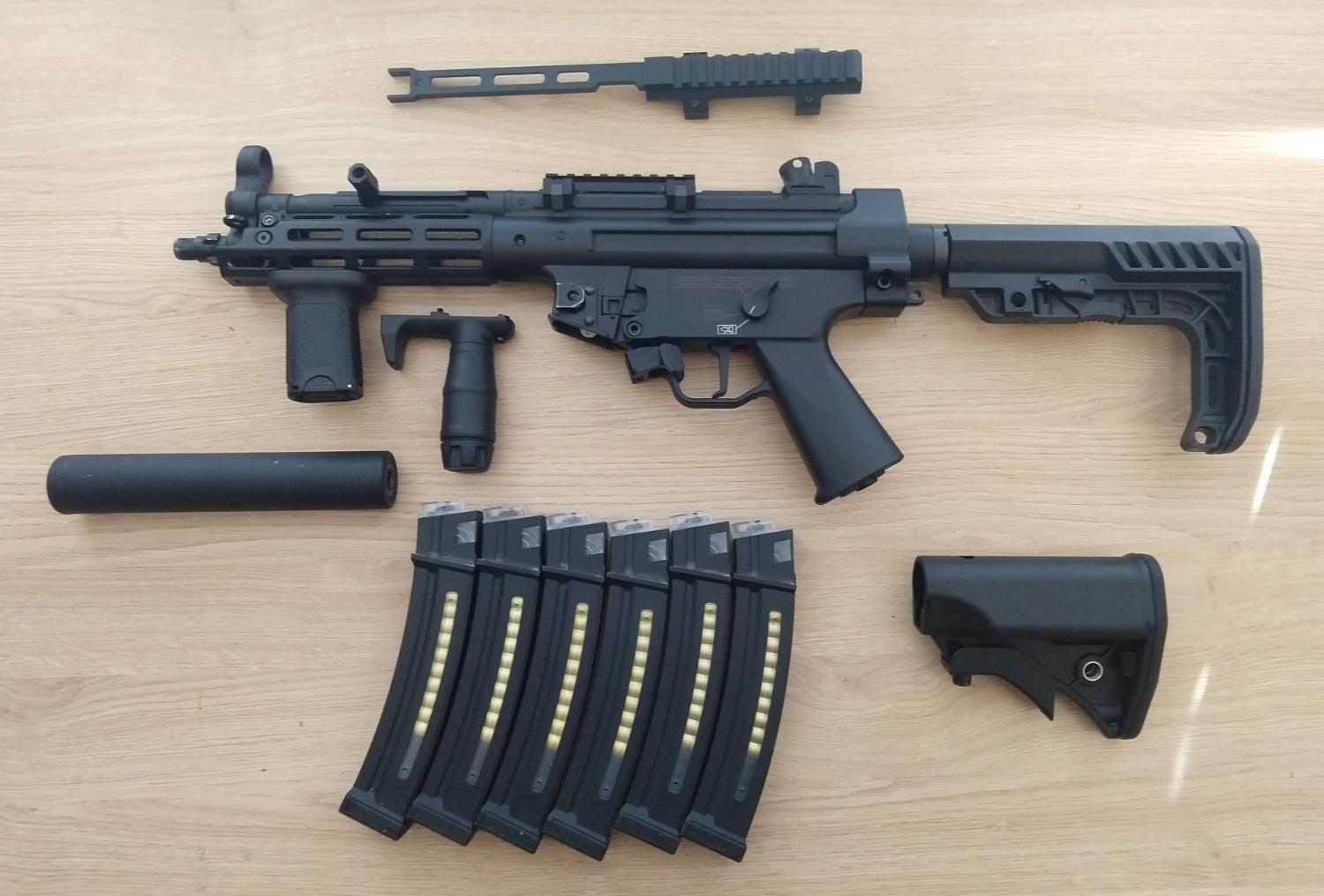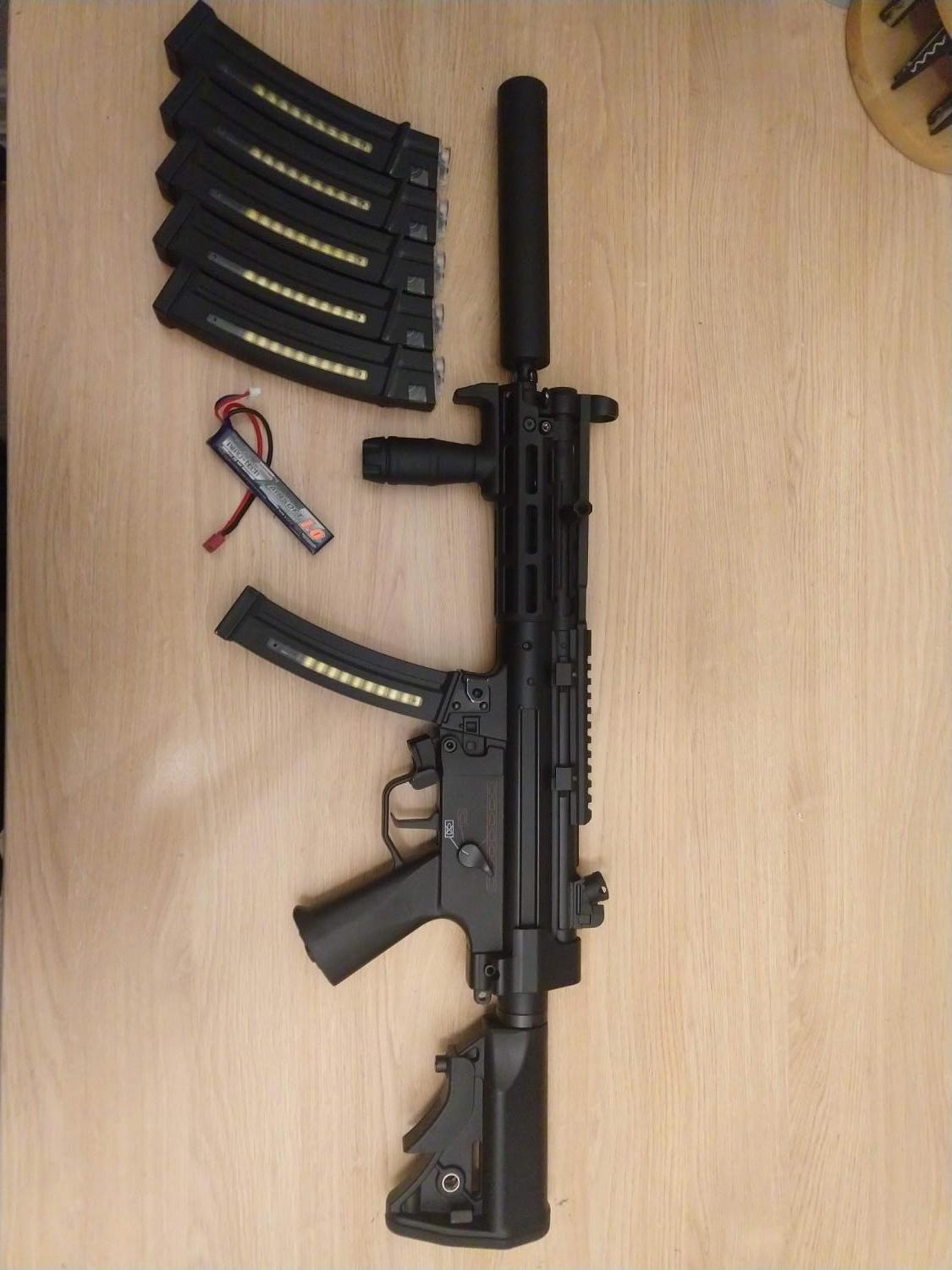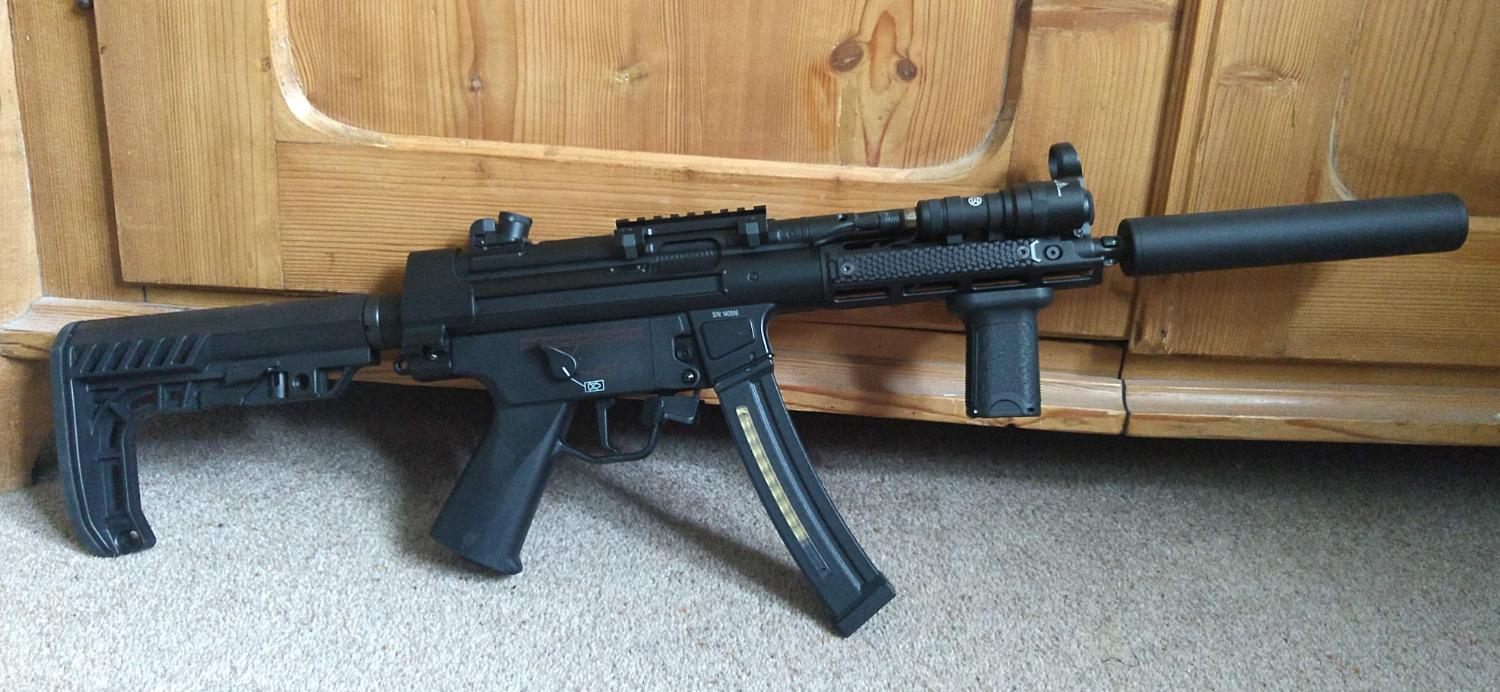 Only a few scuff marks from light use, the weird muzzle cover is missing, but the MP5 muzzle device with the tri-lug and 14mm CCW threads is there.