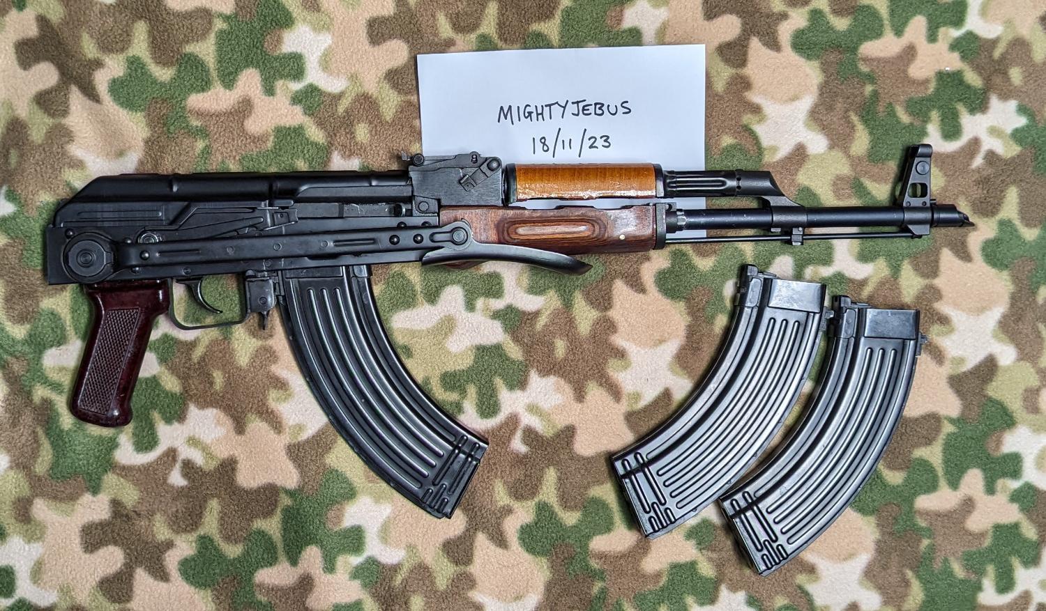 Up for sale is a GHK AKMS with 3 leak free magazines and a box of spares. The GBB has had real soviet furniture added including a RS pistol grip. There is the odd scratch and ding but it's an AK so it looks better  . there are some deeper scratches on the mock gas piston but it's inside the gas tube so can't be seen.