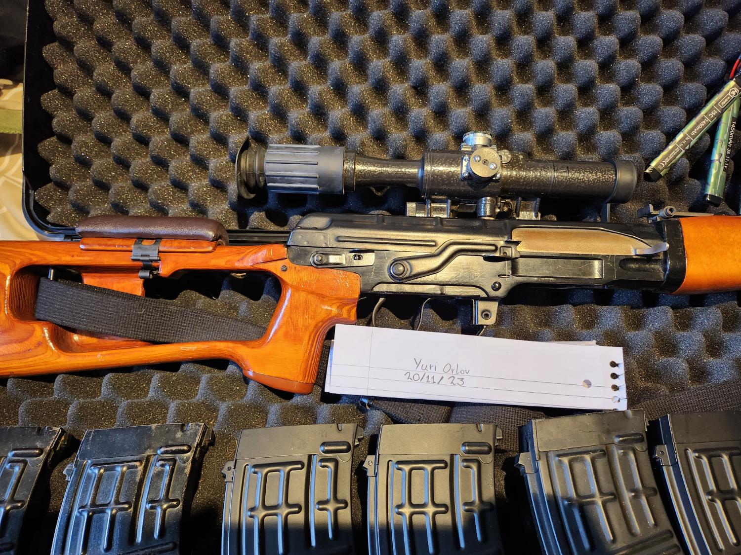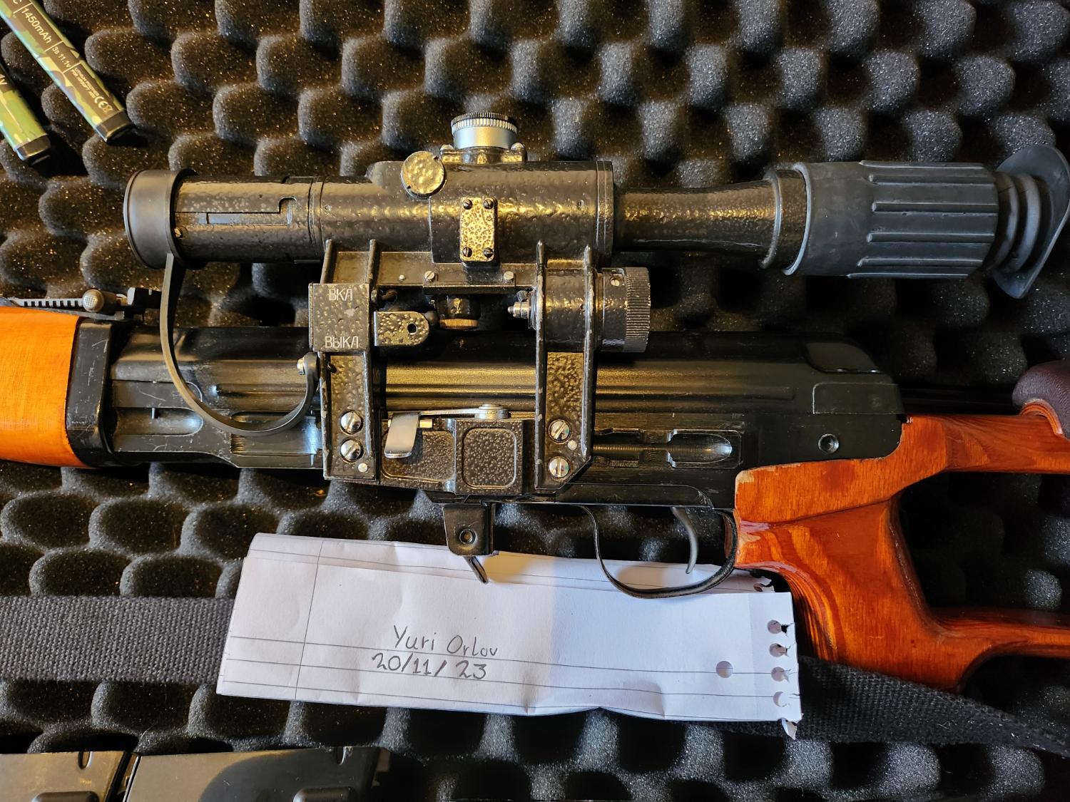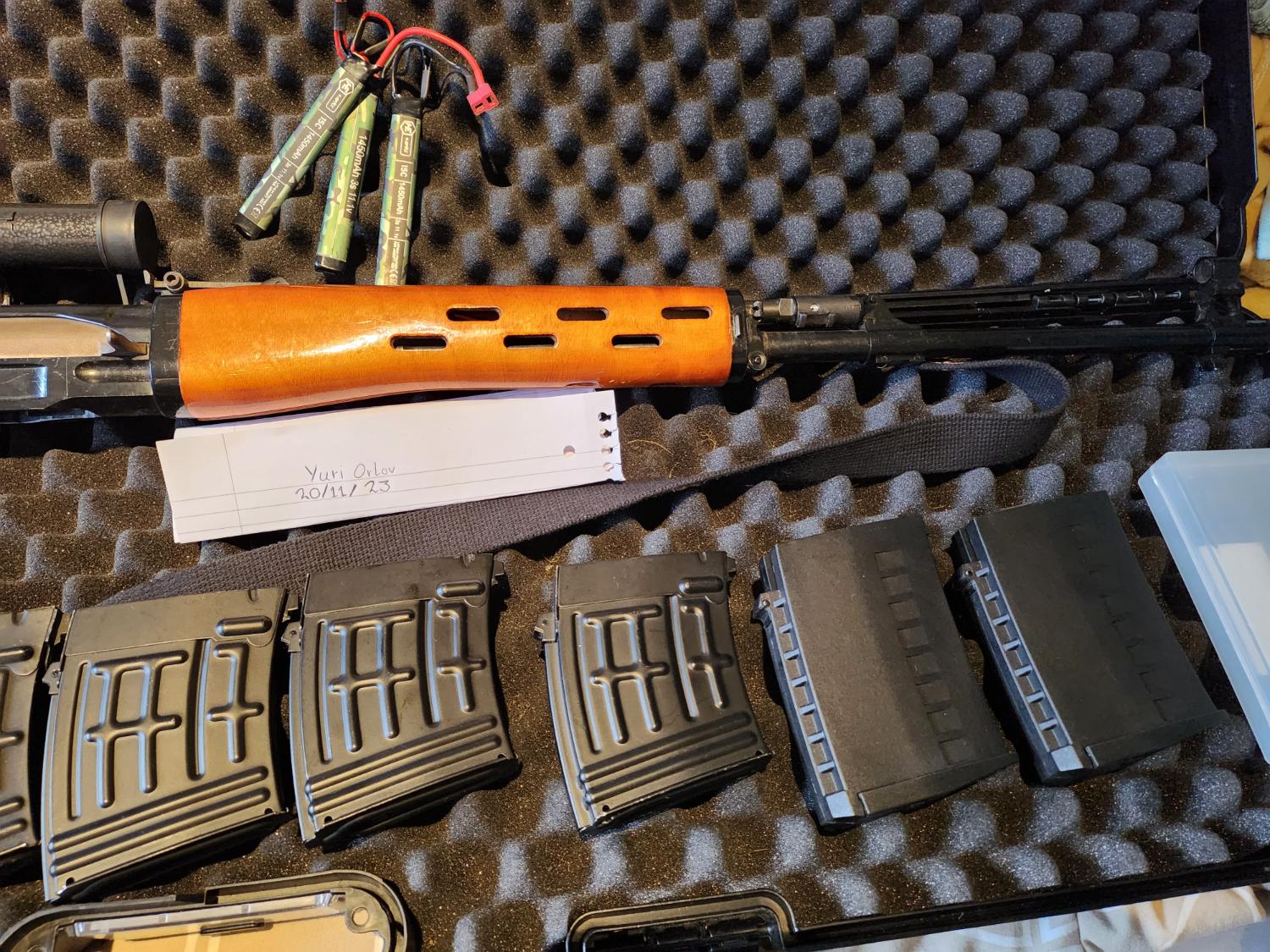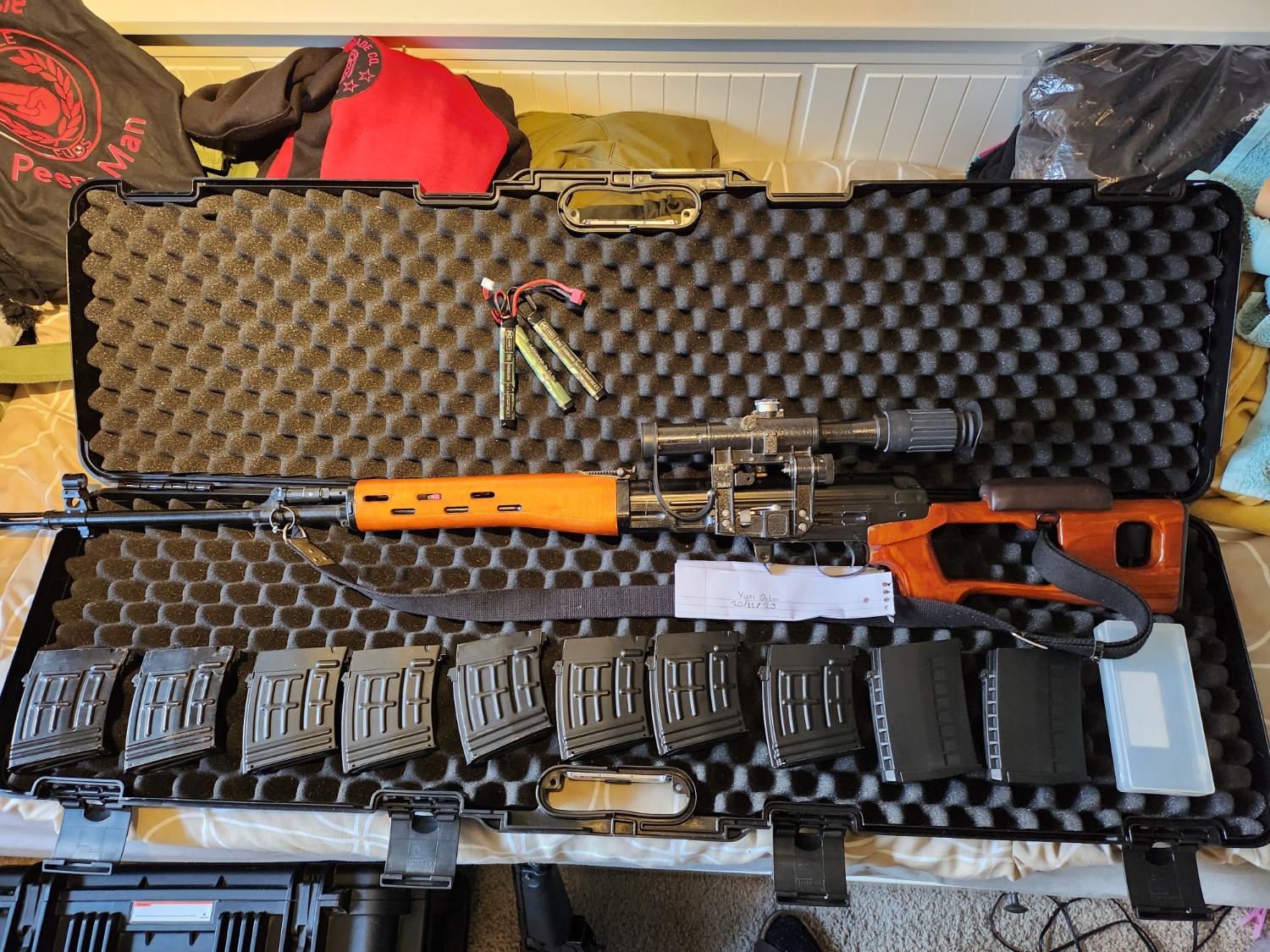 Kingdom of airsoft built real sword SVD ( serial no. RS000271) the rif is in awesome condition the only real wear on it is a slight patina on the charging handle.